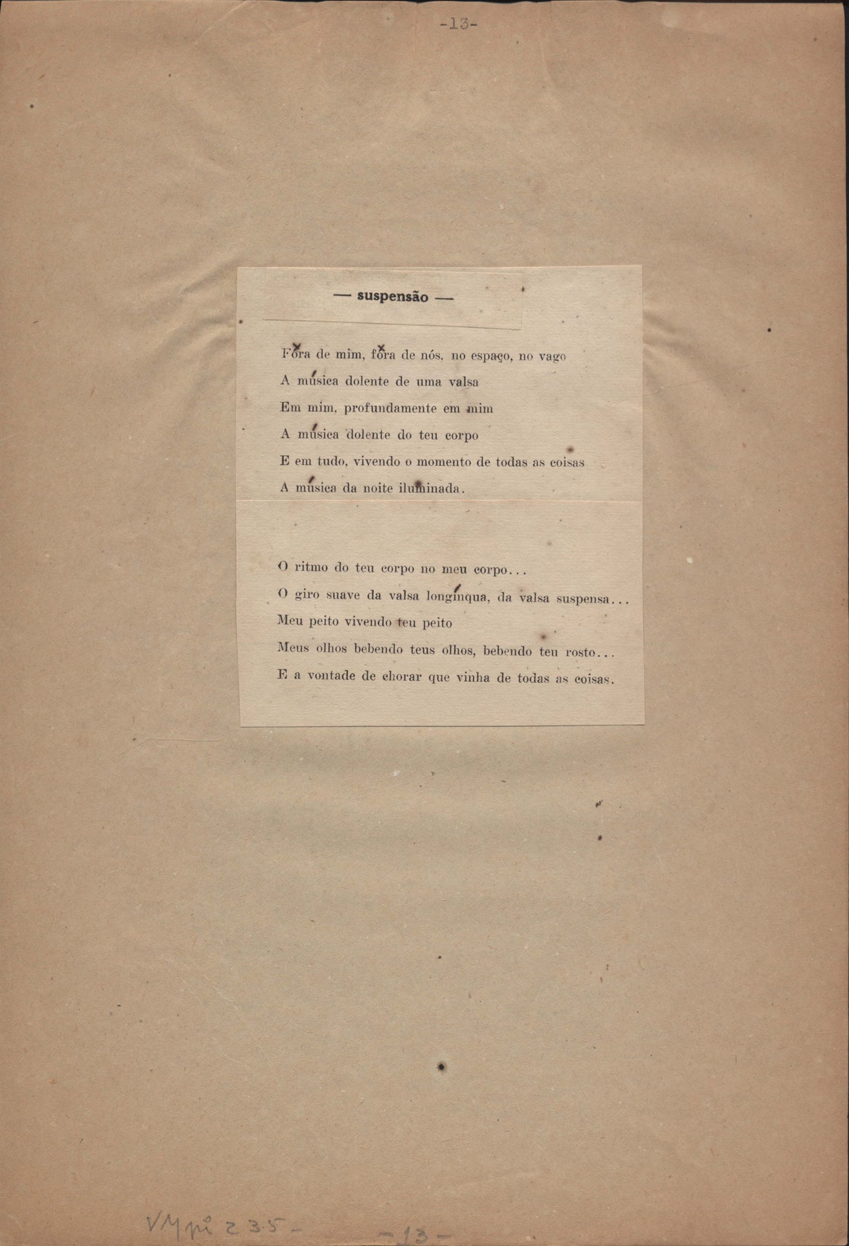 Este documento faz parte do dossiê VMPI235, que contempla poemas datados entre 17 ago. 1932 e 11 ago. 1933, publicados no livro O caminho para a distância. Inclui recortes de alguns poemas impressos da 1ª edição com correções manuscritas.