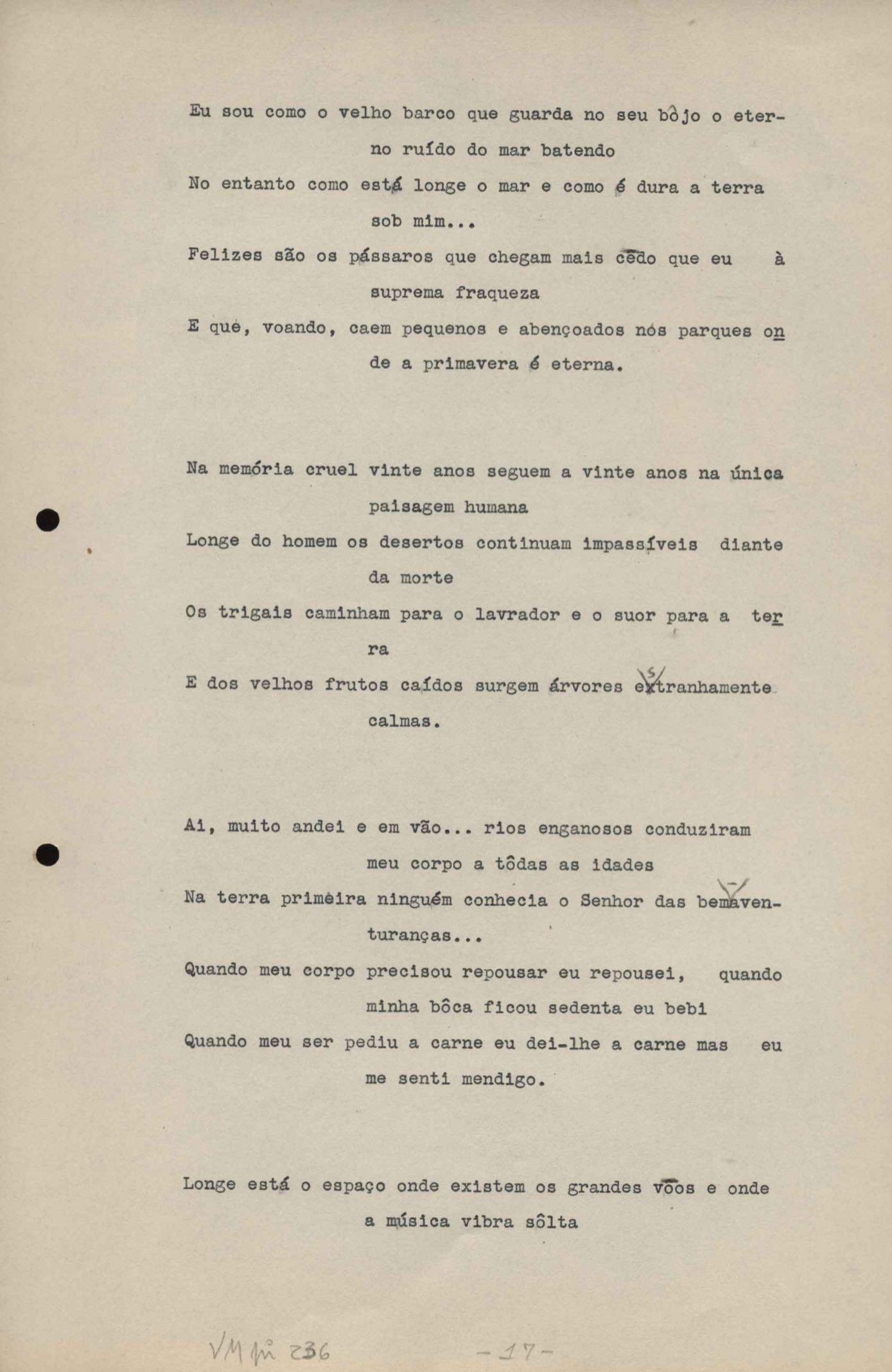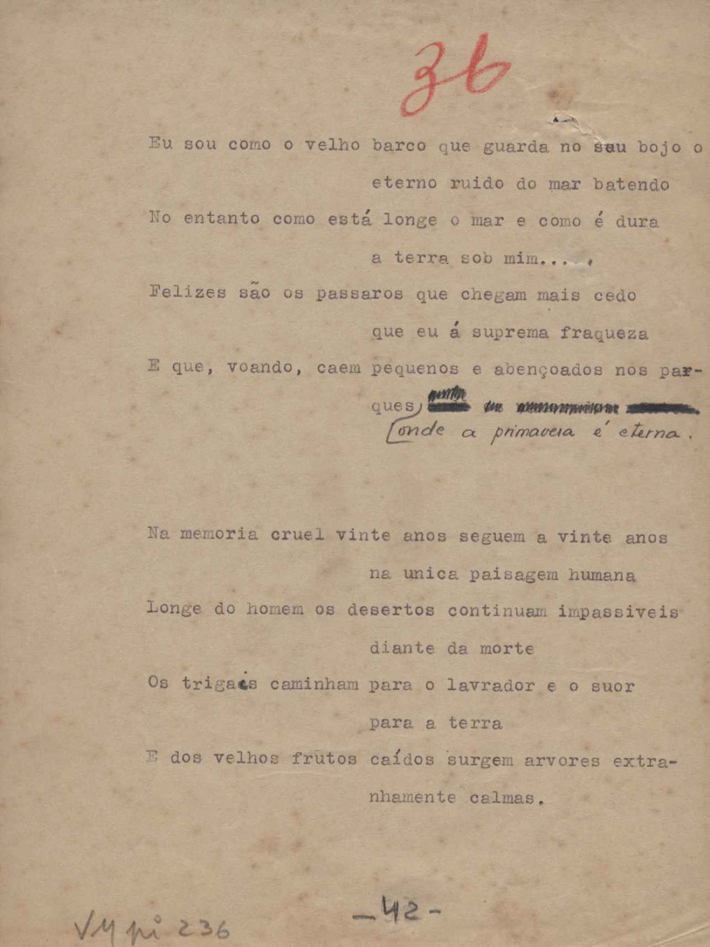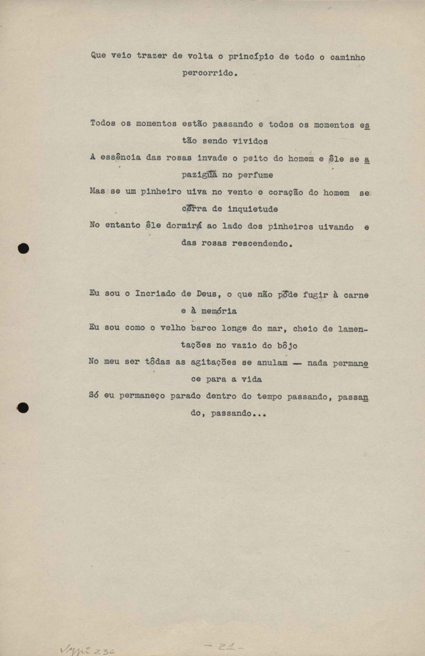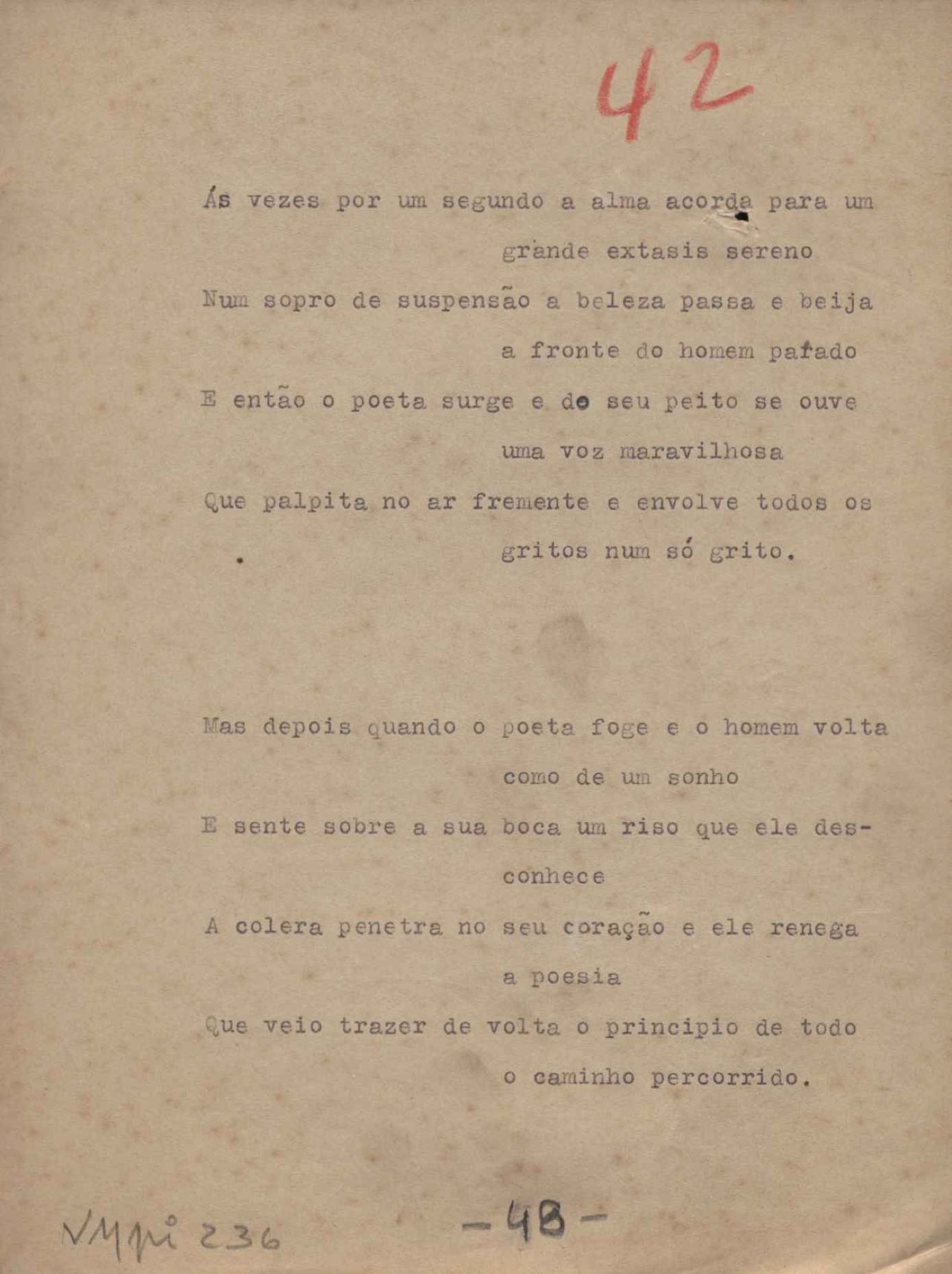 Este documento faz parte do dossiê VMPI236, que contempla poemas datados entre 22 out. 1932 e 20 out. 1938, publicados no livro Forma e exegese. Inclui o datiloscrito que serviu de base à primeira edição.