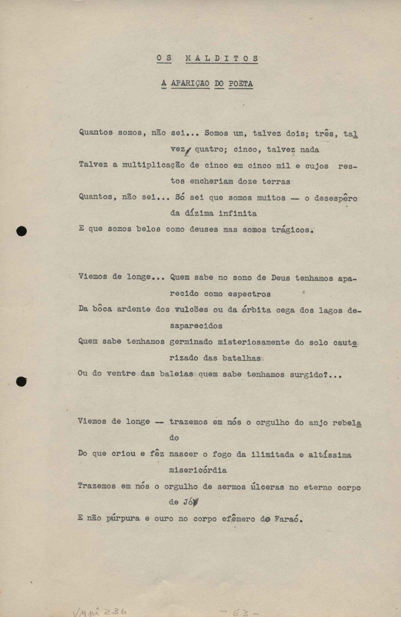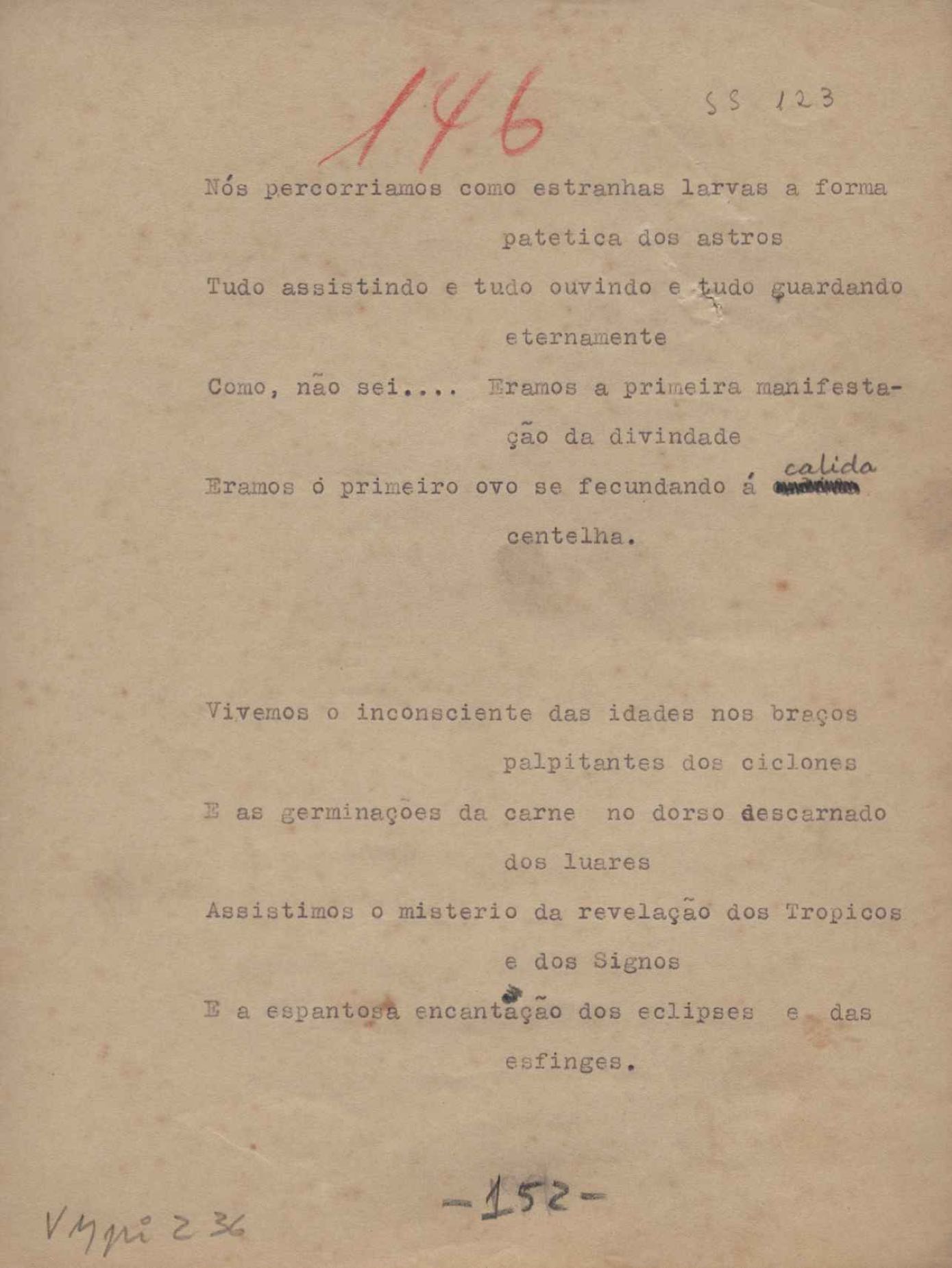 Este documento faz parte do dossiê VMPI236, que contempla poemas datados entre 22 out. 1932 e 20 out. 1938, publicados no livro Forma e exegese. Inclui o datiloscrito que serviu de base à primeira edição.