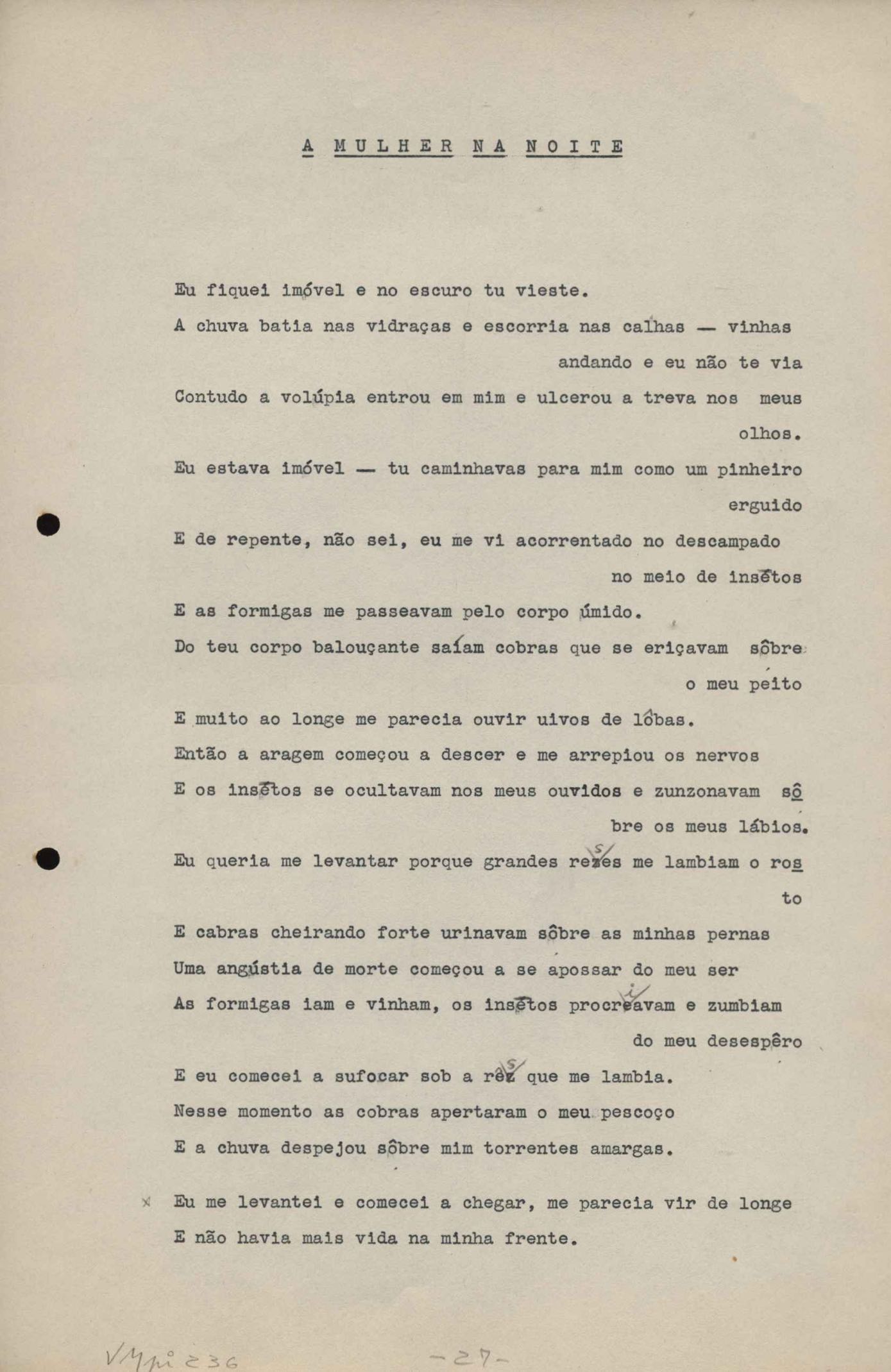 Este documento faz parte do dossiê VMPI236, que contempla poemas datados entre 22 out. 1932 e 20 out. 1938, publicados no livro Forma e exegese. Inclui o datiloscrito que serviu de base à primeira edição.