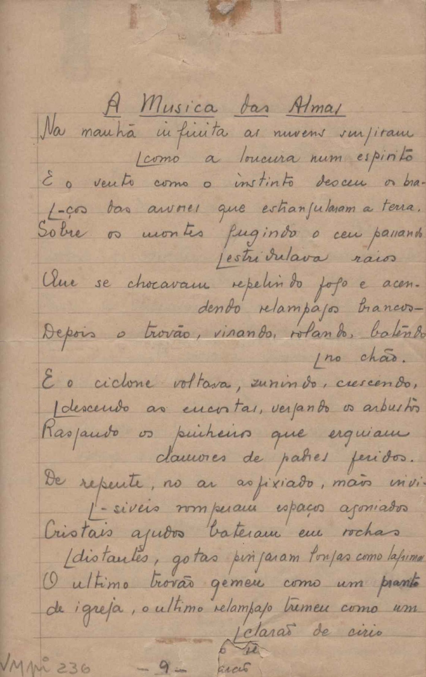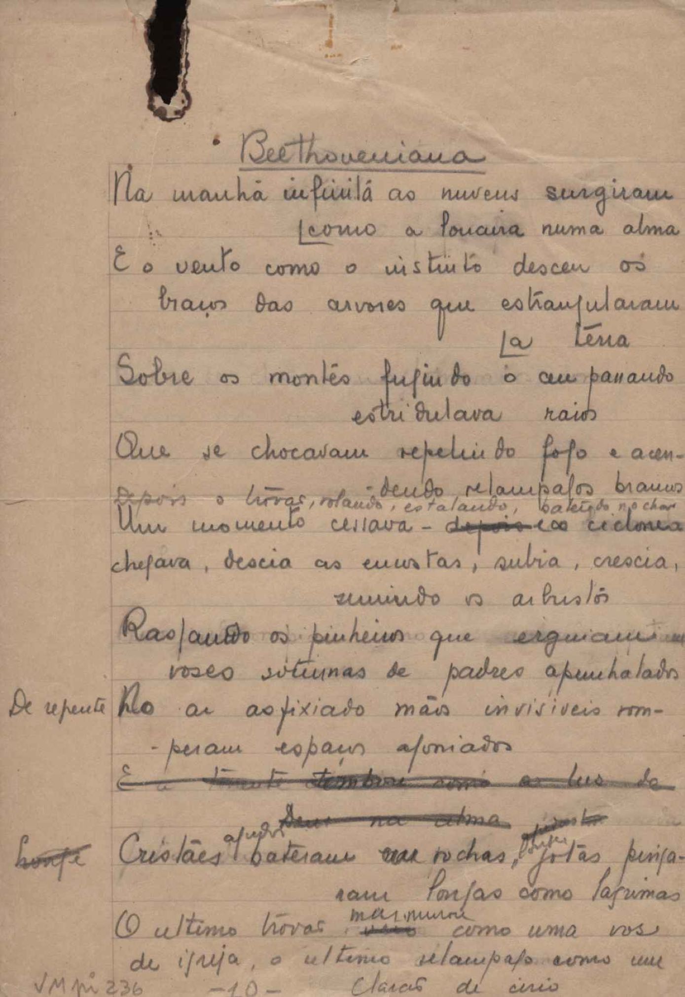 Este documento faz parte do dossiê VMPI236, que contempla poemas datados entre 22 out. 1932 e 20 out. 1938, publicados no livro Forma e exegese. Inclui o datiloscrito que serviu de base à primeira edição.