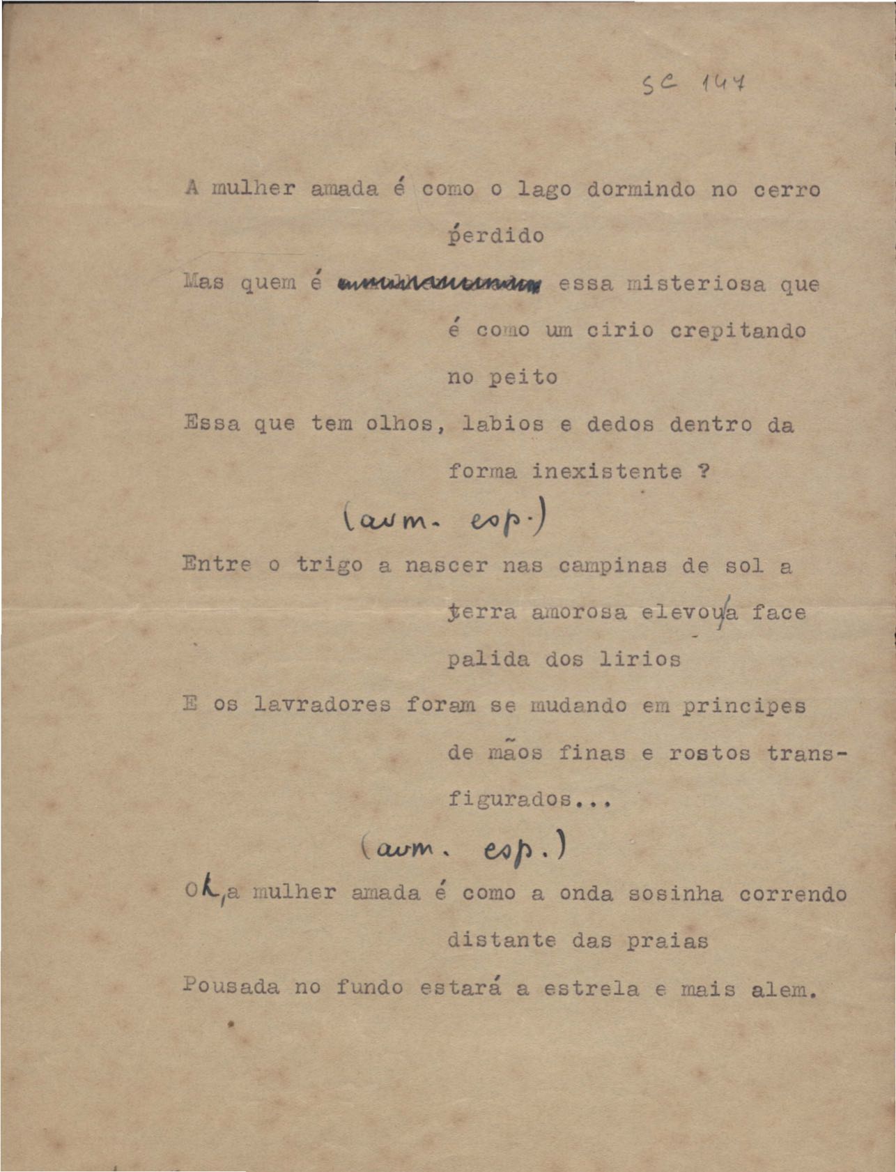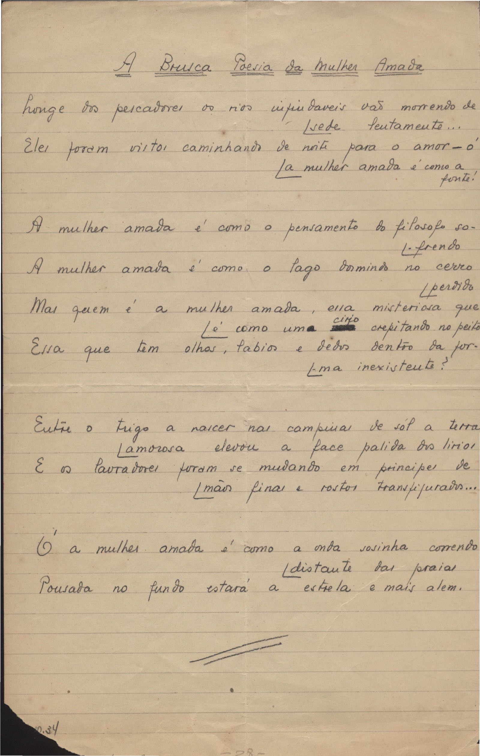 Este documento faz parte do dossiê VMPI238, que contempla poemas datados entre out. 1934 e 19 jan. 1938, publicados no livro Novos poemas. Inclui versões manuscritas e datilografadas, algumas com emendas.