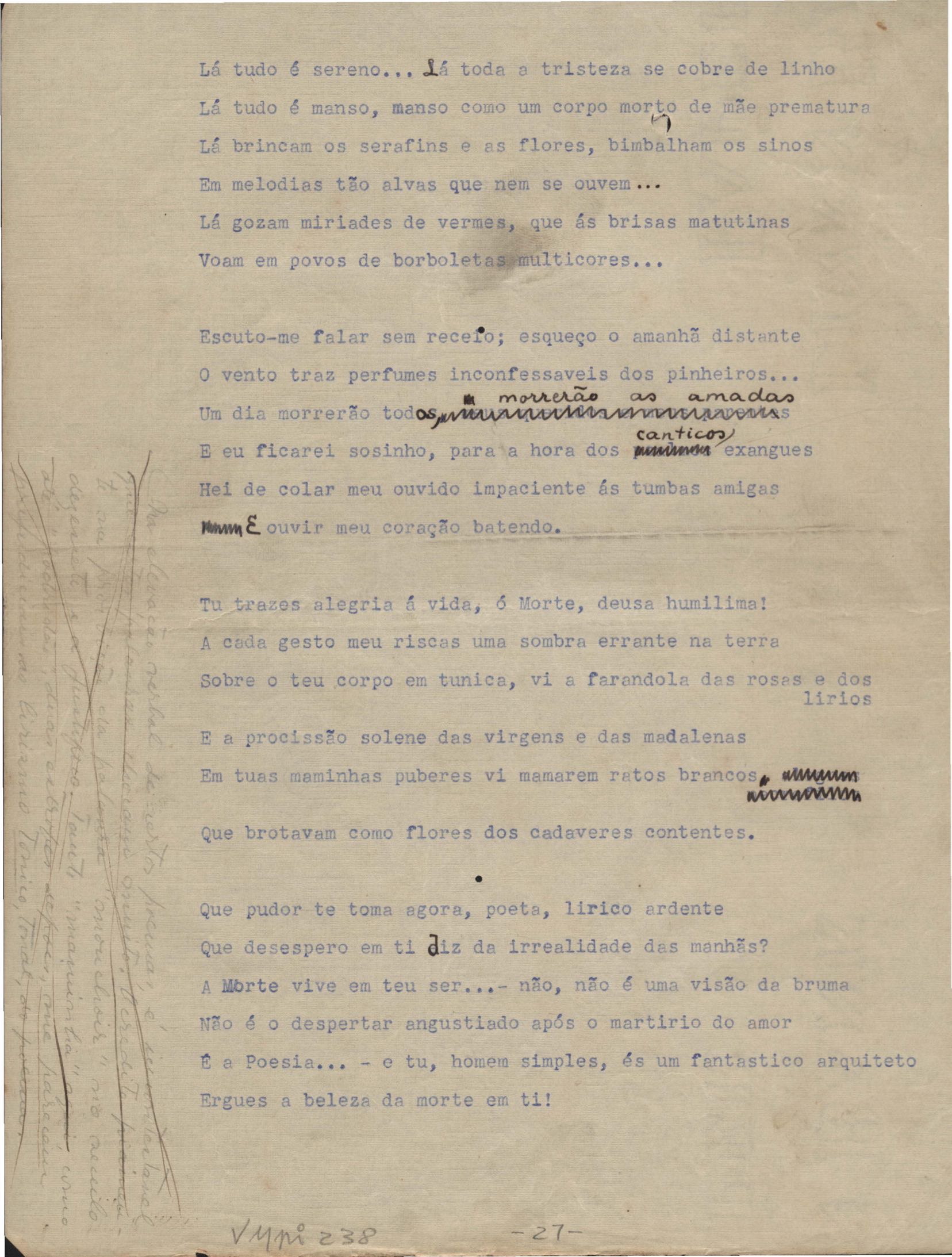 Este documento faz parte do dossiê VMPI238, que contempla poemas datados entre out. 1934 e 19 jan. 1938, publicados no livro Novos poemas. Inclui versões manuscritas e datilografadas, algumas com emendas.