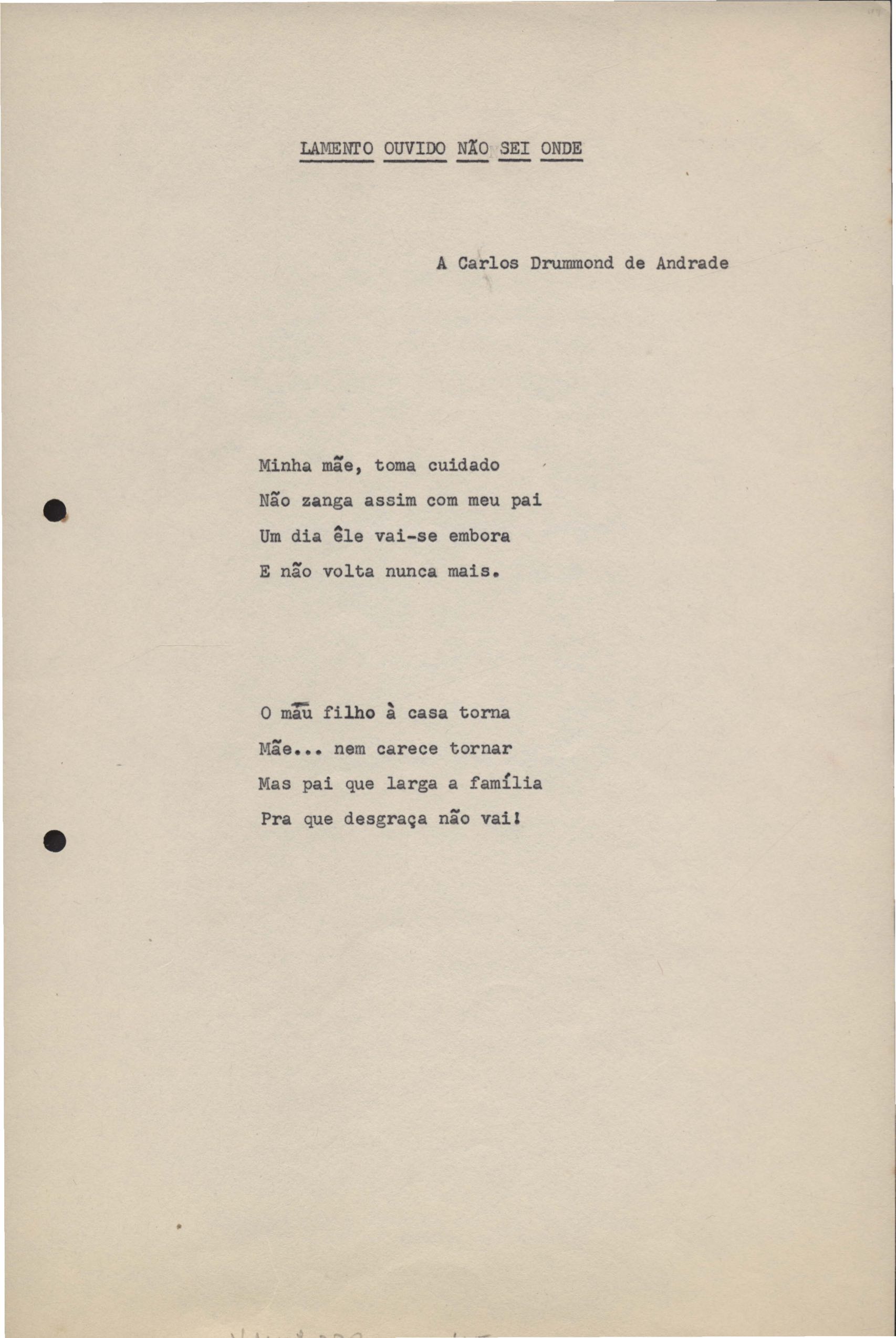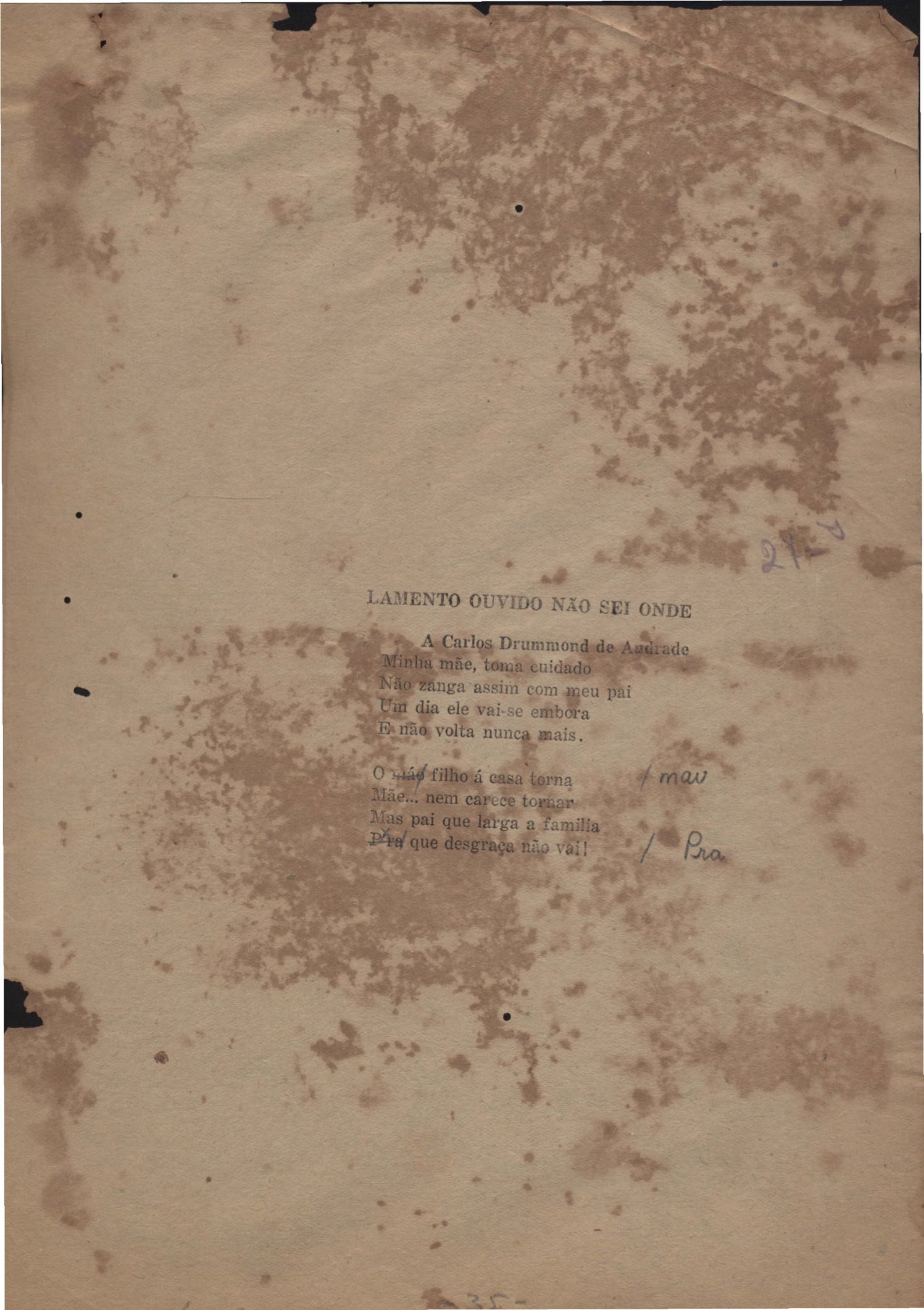 Este documento faz parte do dossiê VMPI238, que contempla poemas datados entre out. 1934 e 19 jan. 1938, publicados no livro Novos poemas. Inclui versões manuscritas e datilografadas, algumas com emendas.