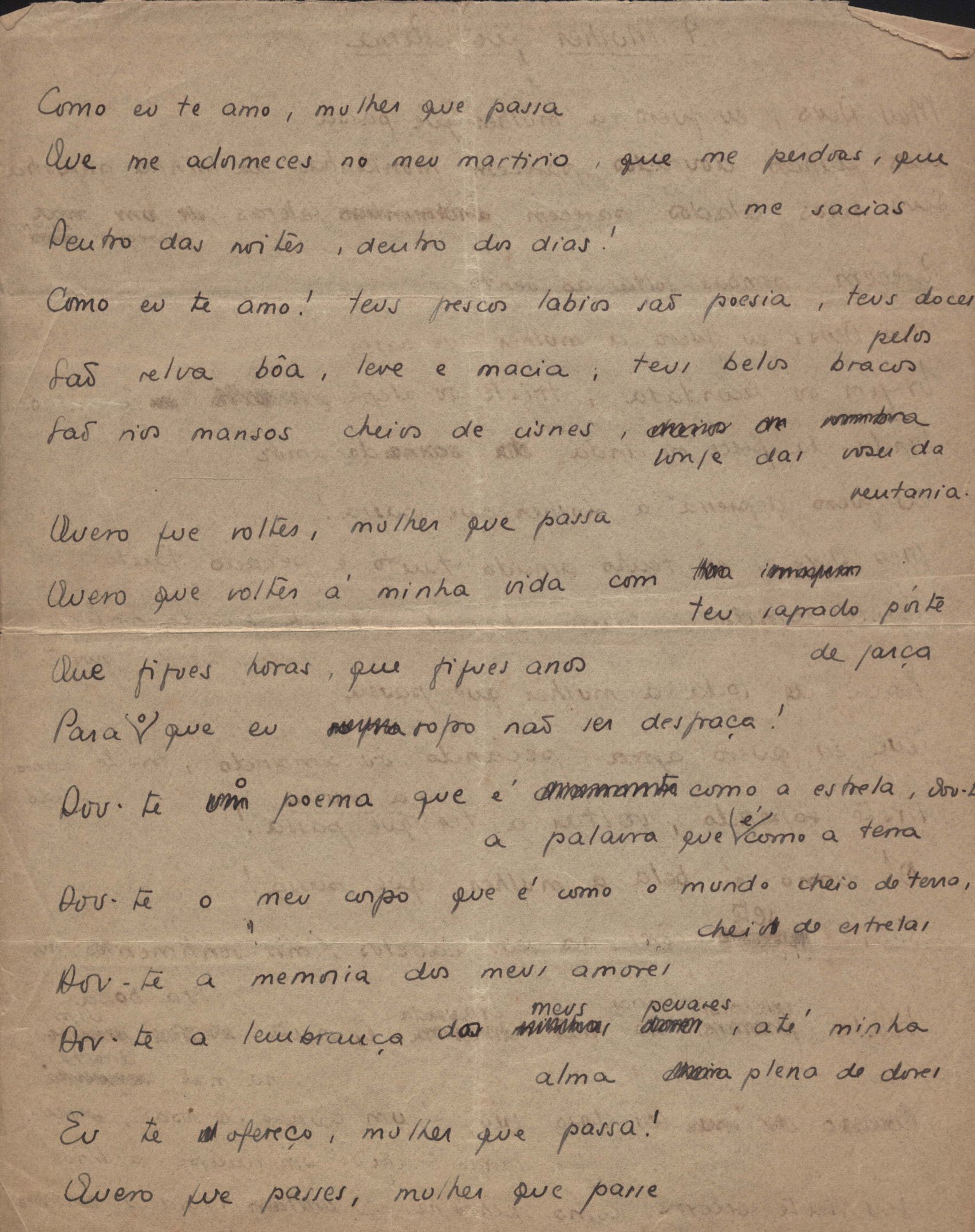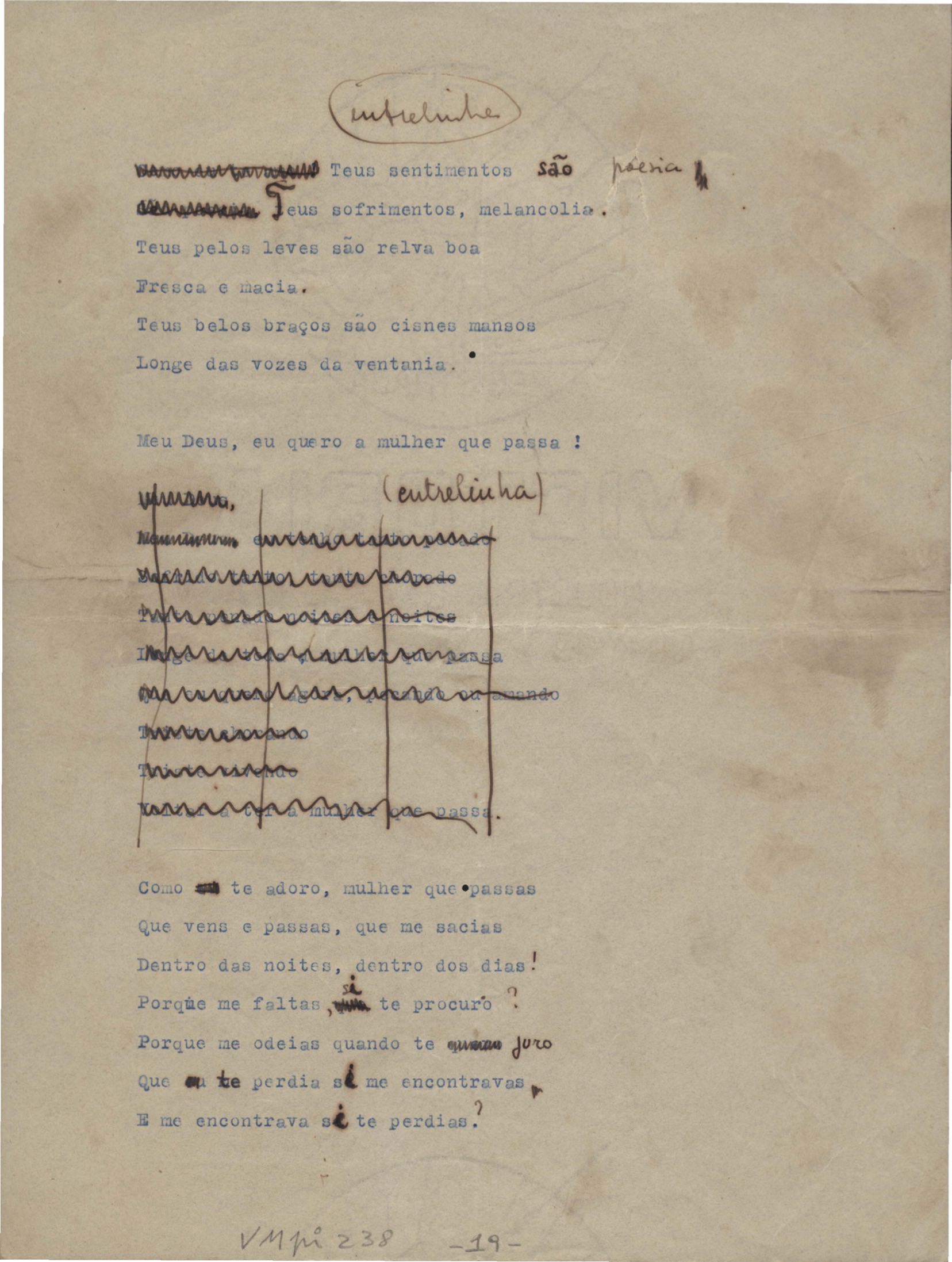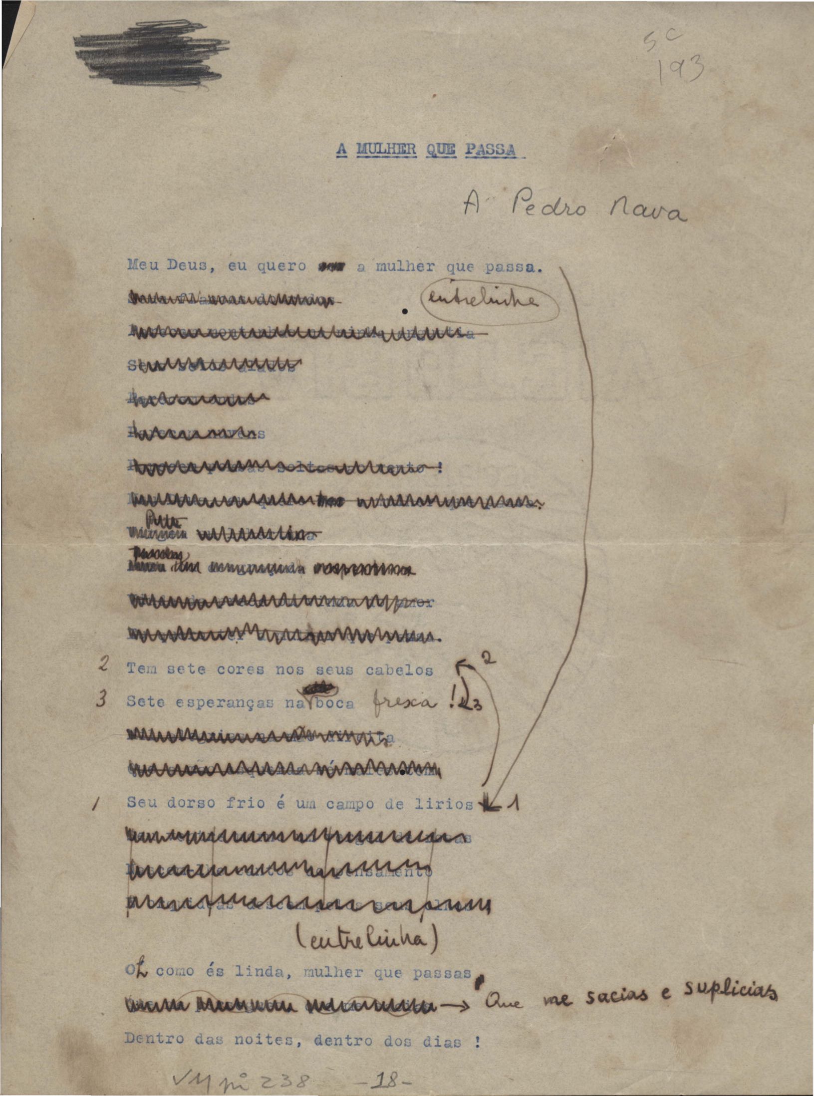 Este documento faz parte do dossiê VMPI238, que contempla poemas datados entre out. 1934 e 19 jan. 1938, publicados no livro Novos poemas. Inclui versões manuscritas e datilografadas, algumas com emendas.