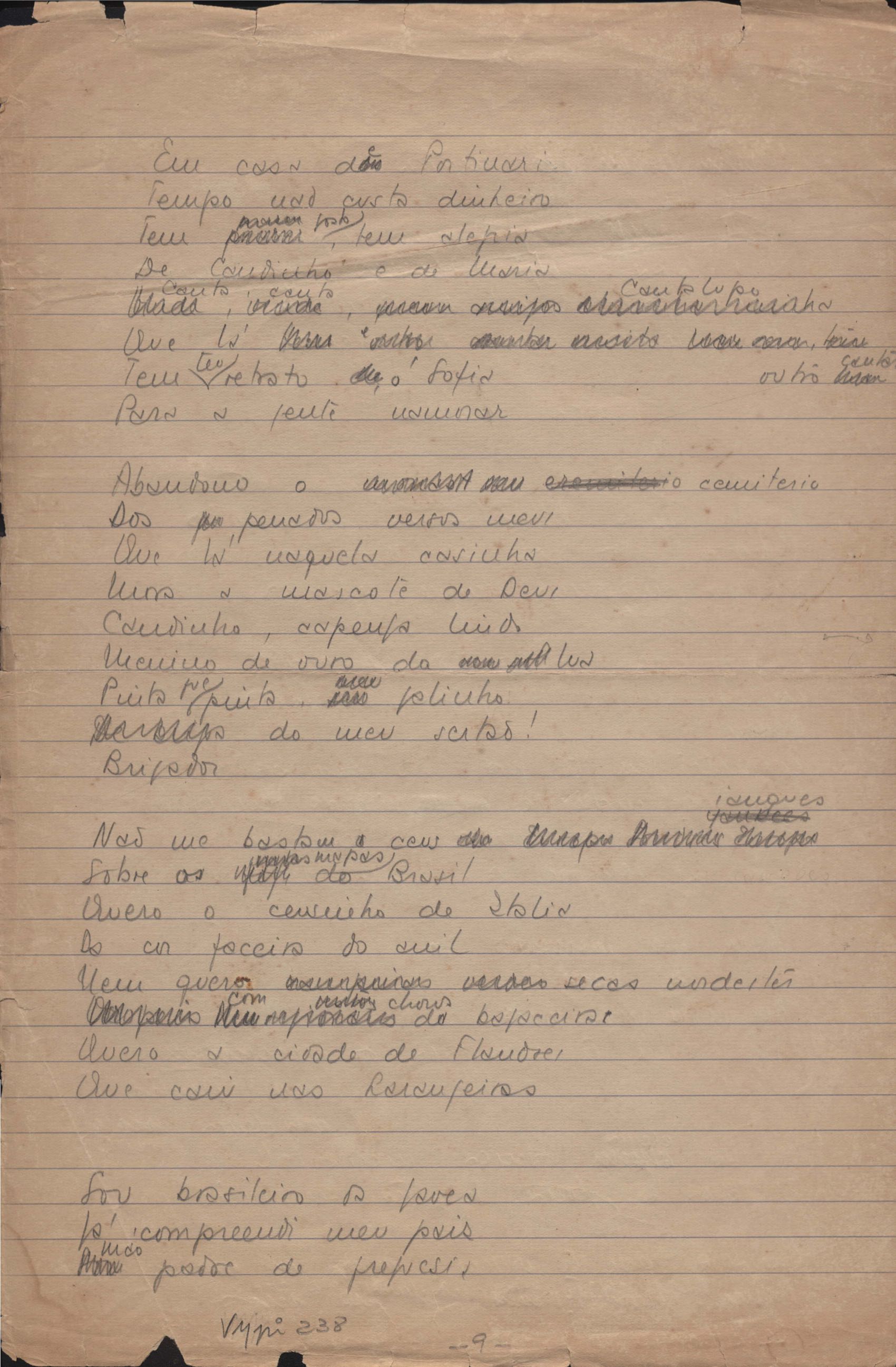 Este documento faz parte do dossiê VMPI238, que contempla poemas datados entre out. 1934 e 19 jan. 1938, publicados no livro Novos poemas. Inclui versões manuscritas e datilografadas, algumas com emendas.