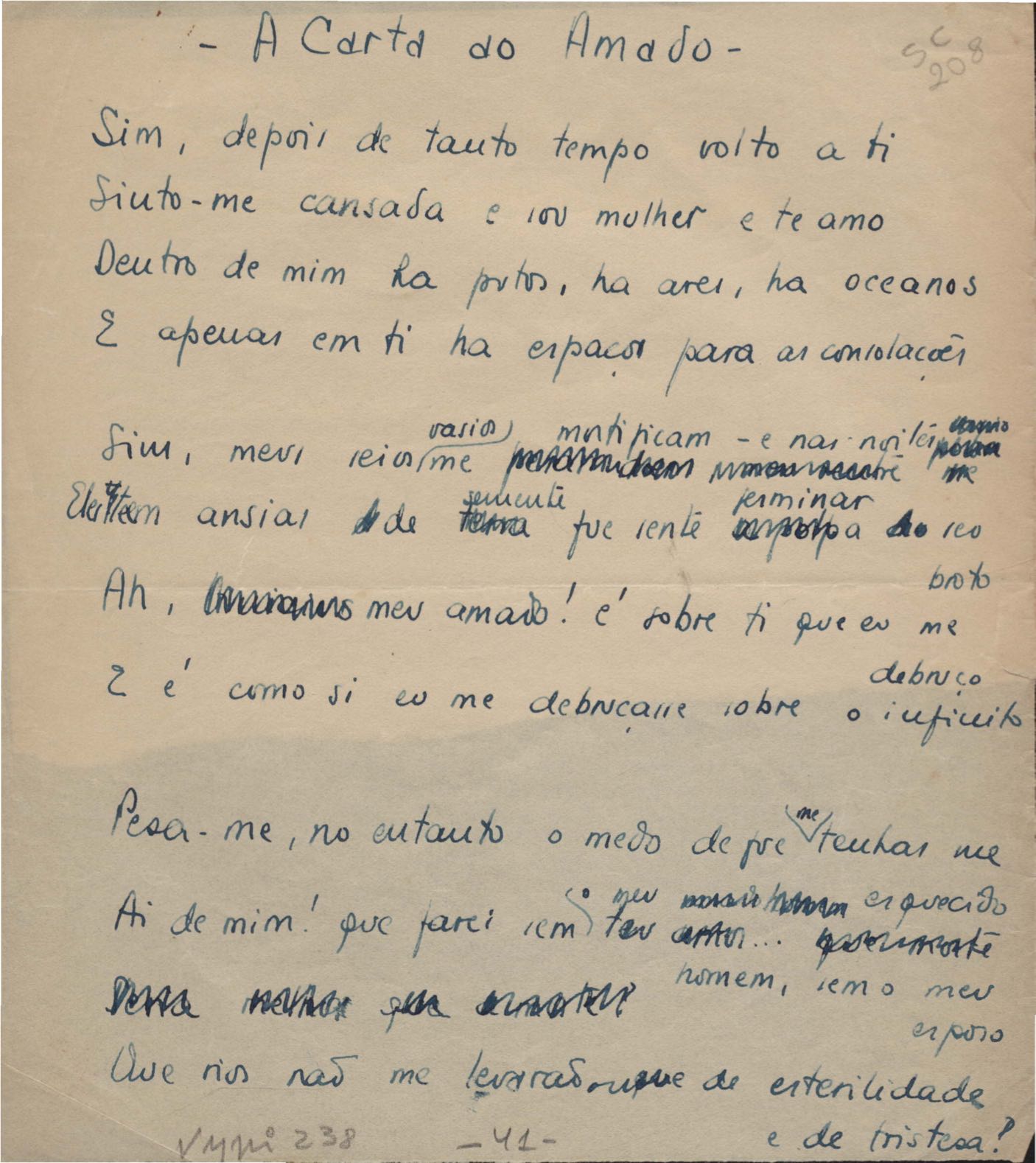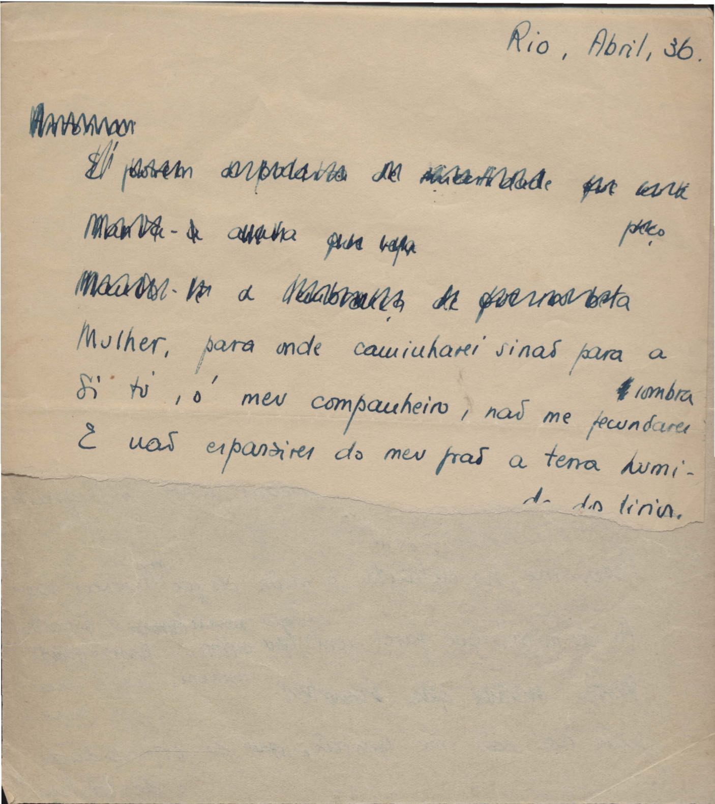 Este documento faz parte do dossiê VMPI238, que contempla poemas datados entre out. 1934 e 19 jan. 1938, publicados no livro Novos poemas. Inclui versões manuscritas e datilografadas, algumas com emendas.