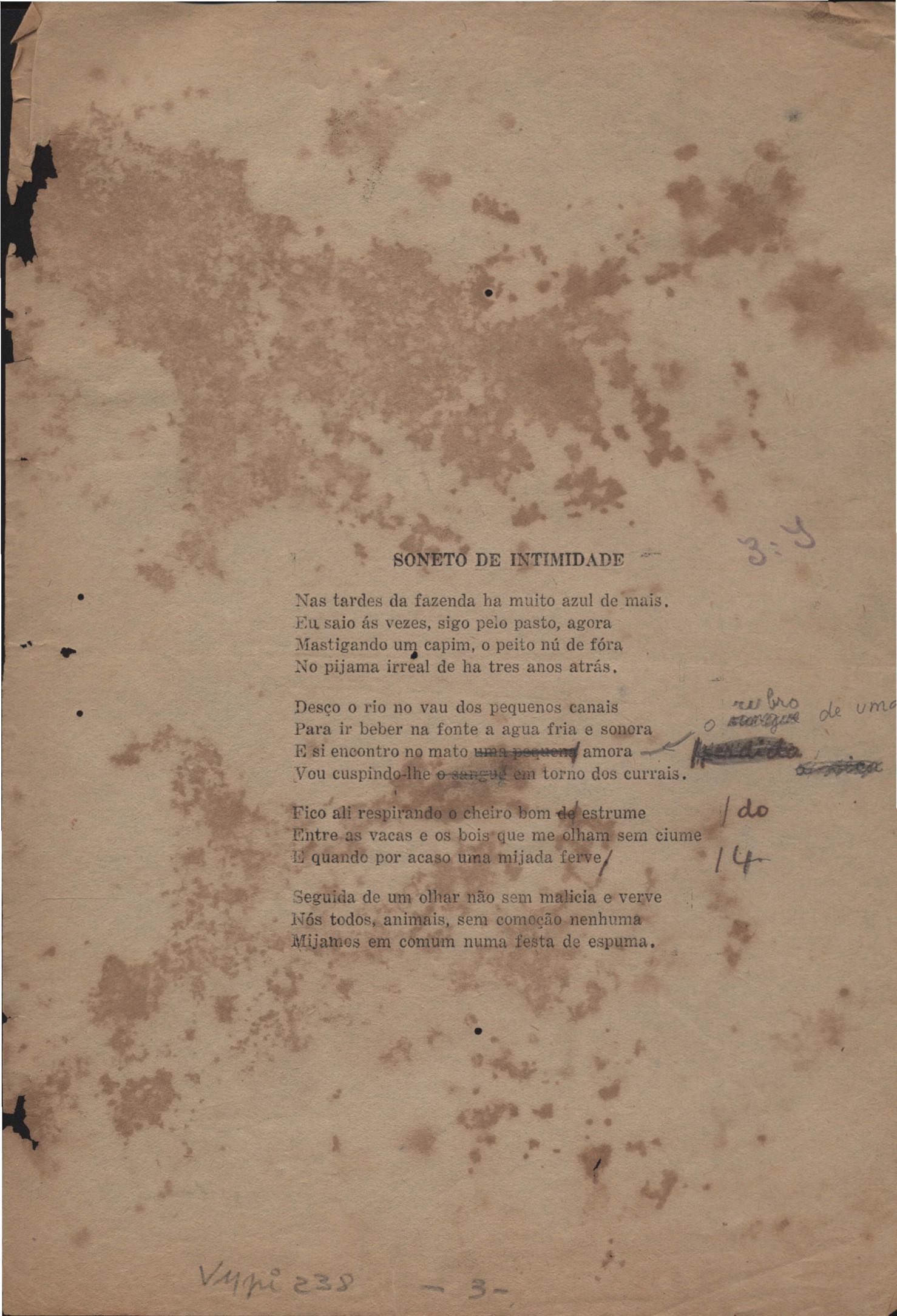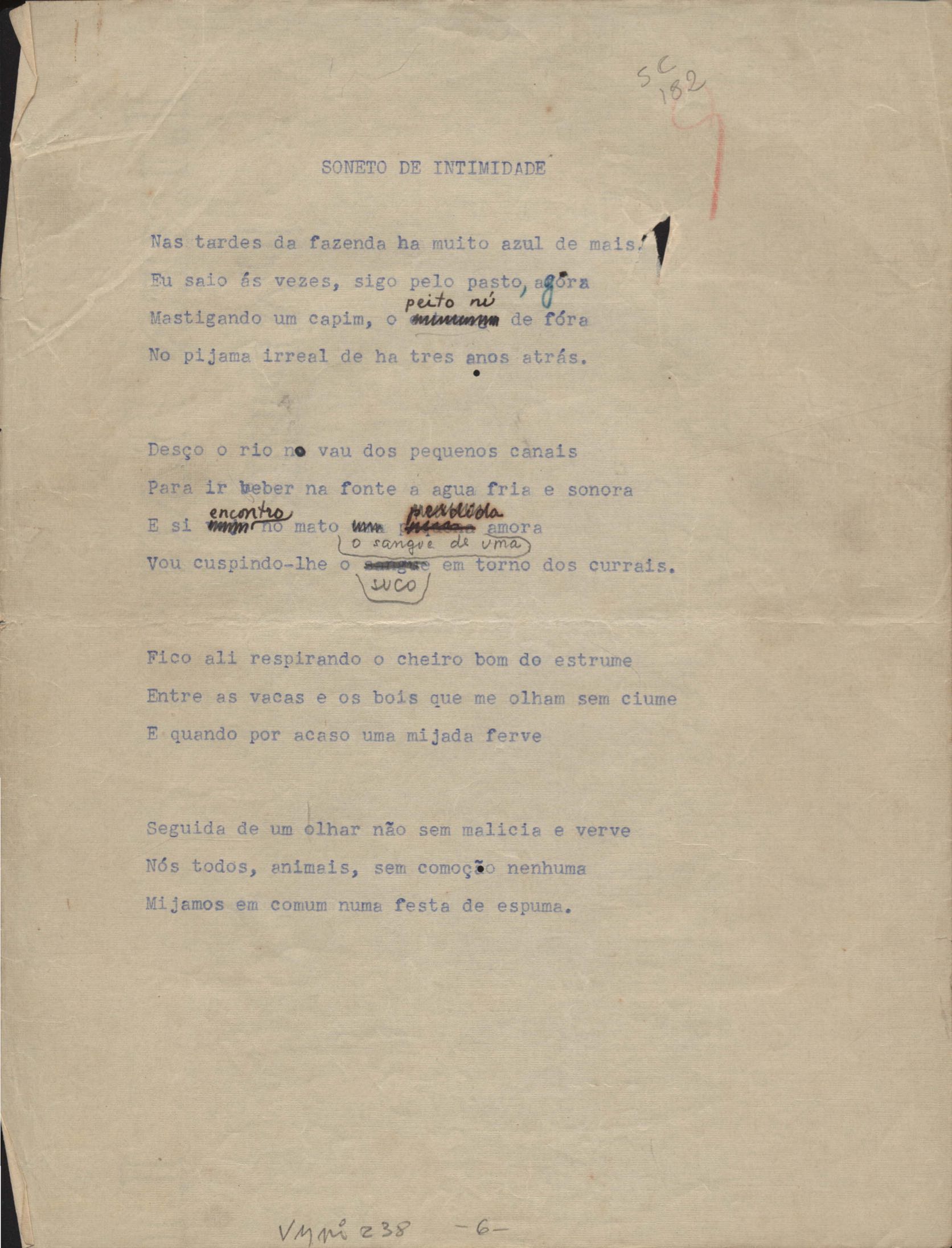 Este documento faz parte do dossiê VMPI238, que contempla poemas datados entre out. 1934 e 19 jan. 1938, publicados no livro Novos poemas. Inclui versões manuscritas e datilografadas, algumas com emendas.