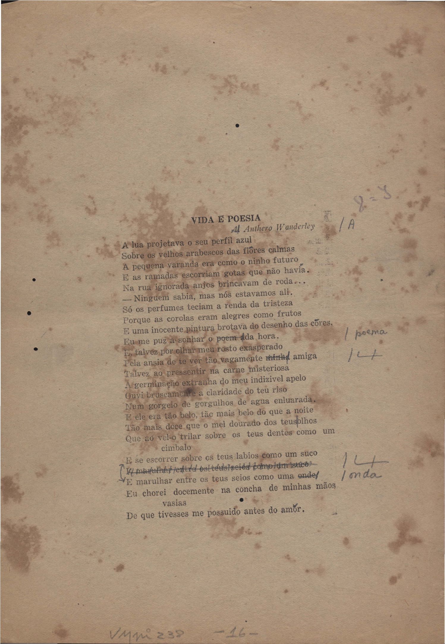 Este documento faz parte do dossiê VMPI238, que contempla poemas datados entre out. 1934 e 19 jan. 1938, publicados no livro Novos poemas. Inclui versões manuscritas e datilografadas, algumas com emendas.