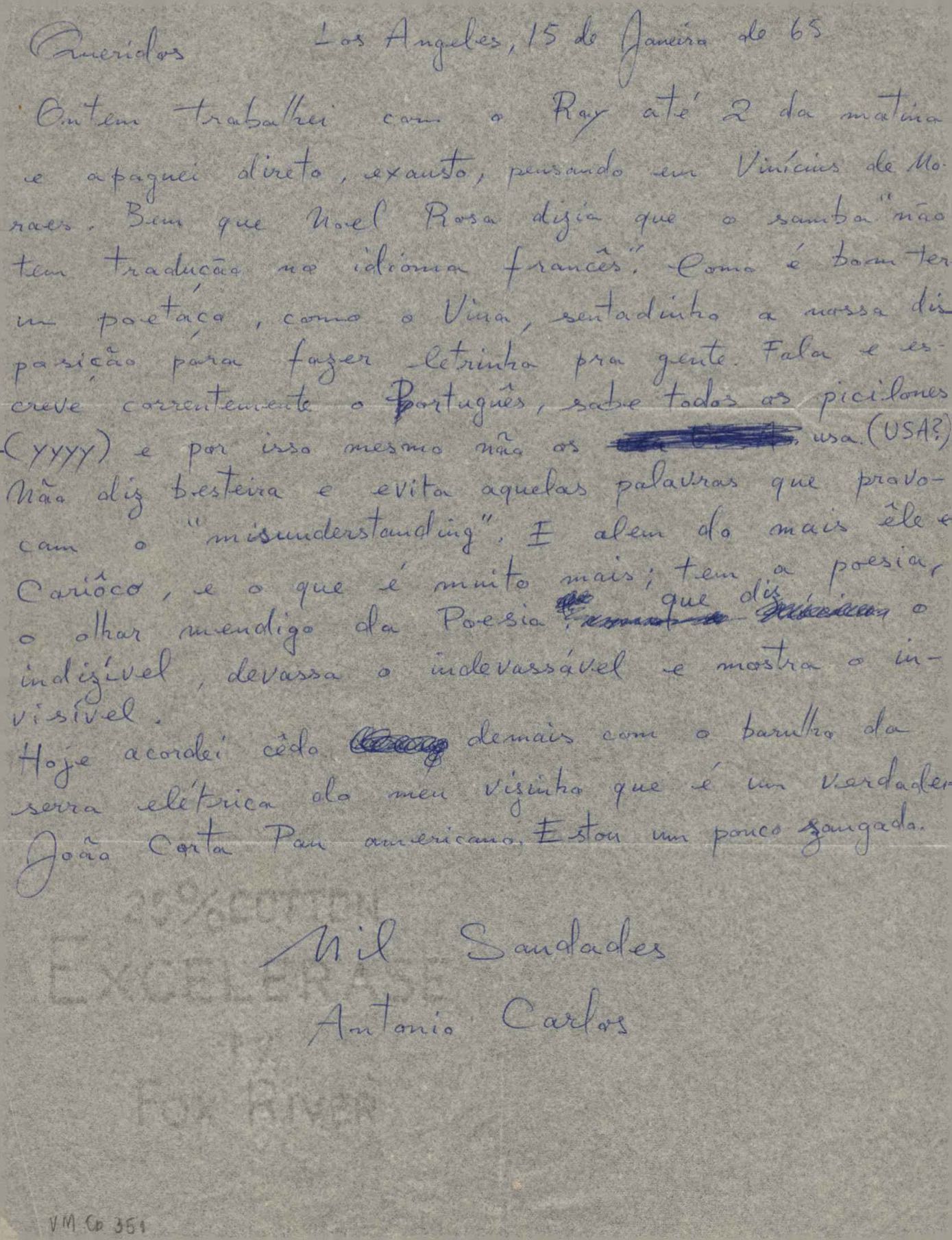 Comentários sobre pagamento de direitos autorais, sobre a divulgação da música brasileira nos EUA e sobre gravações. Informação sobre a luta por ele travada para mudar a imagem da música brasileira nos EUA.