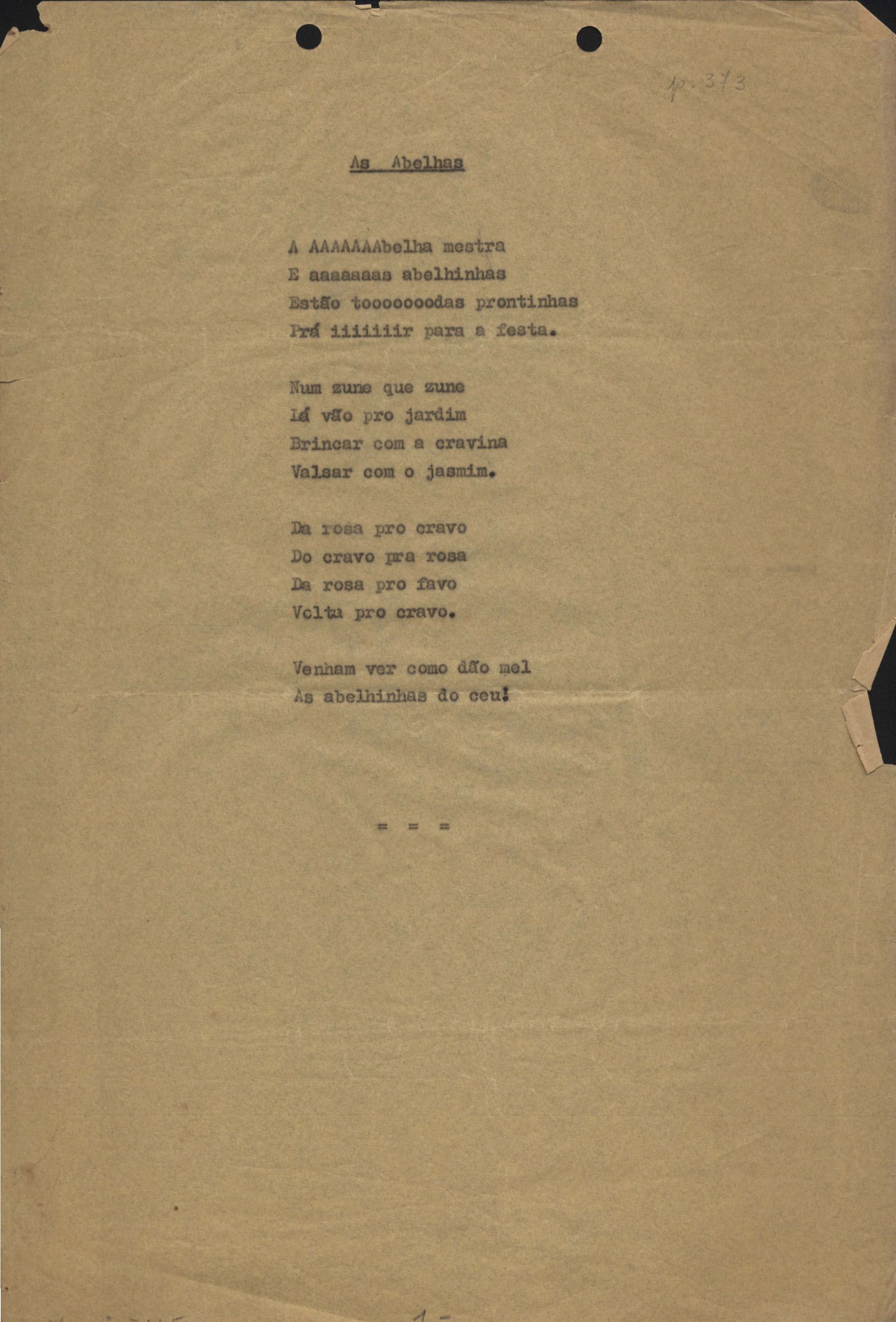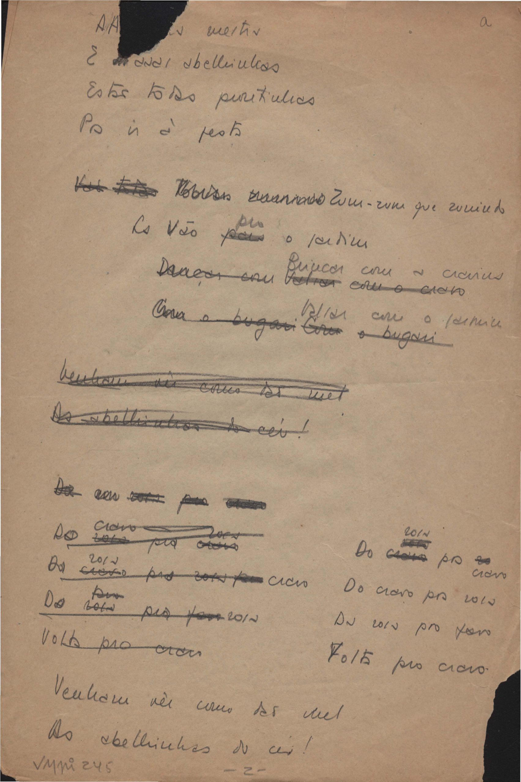 Este documento faz parte do dossiê VMPI245, que contempla poemas não datados, publicados no livro A arca de Noé. Inclui outras versões manuscritas e datilografadas.