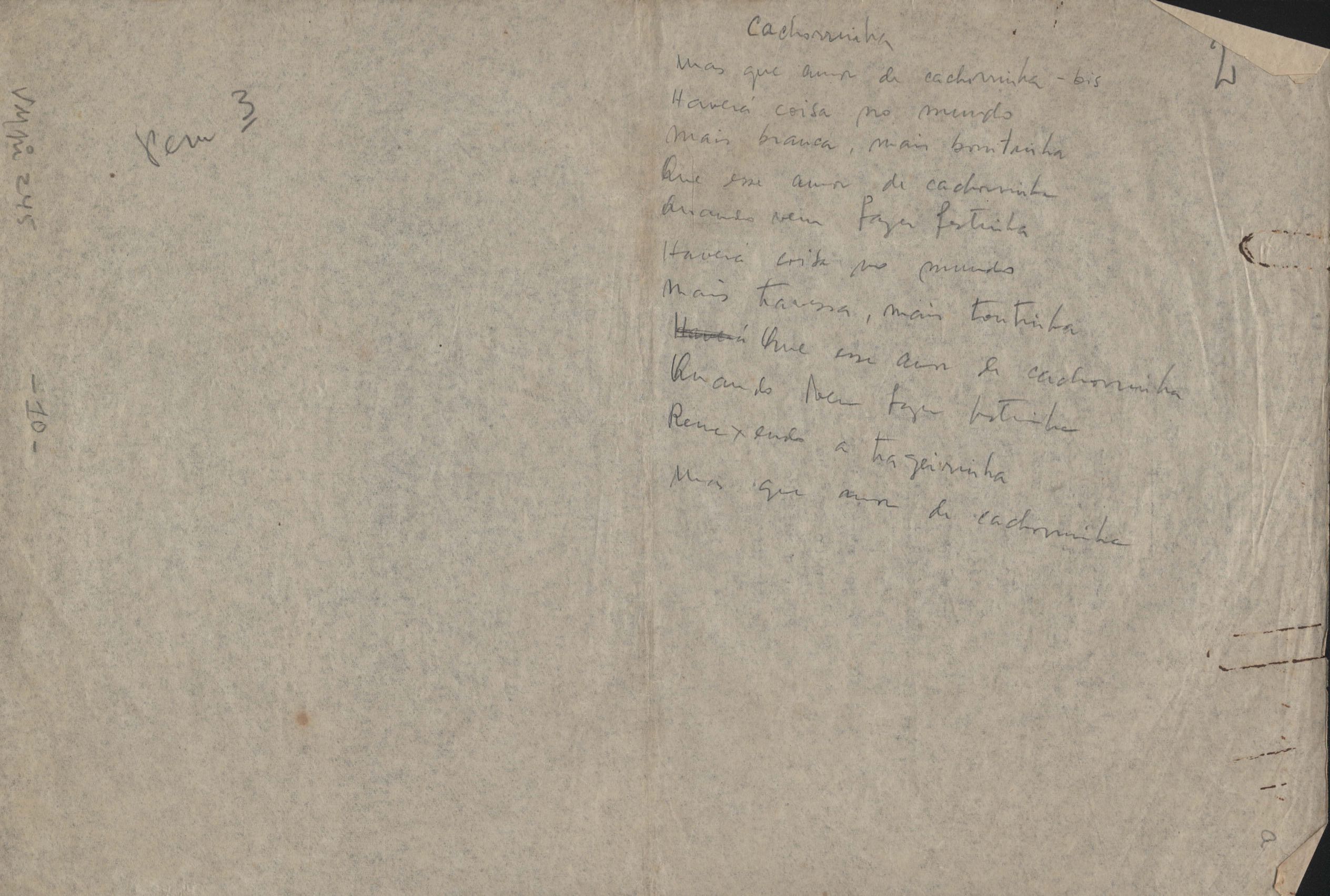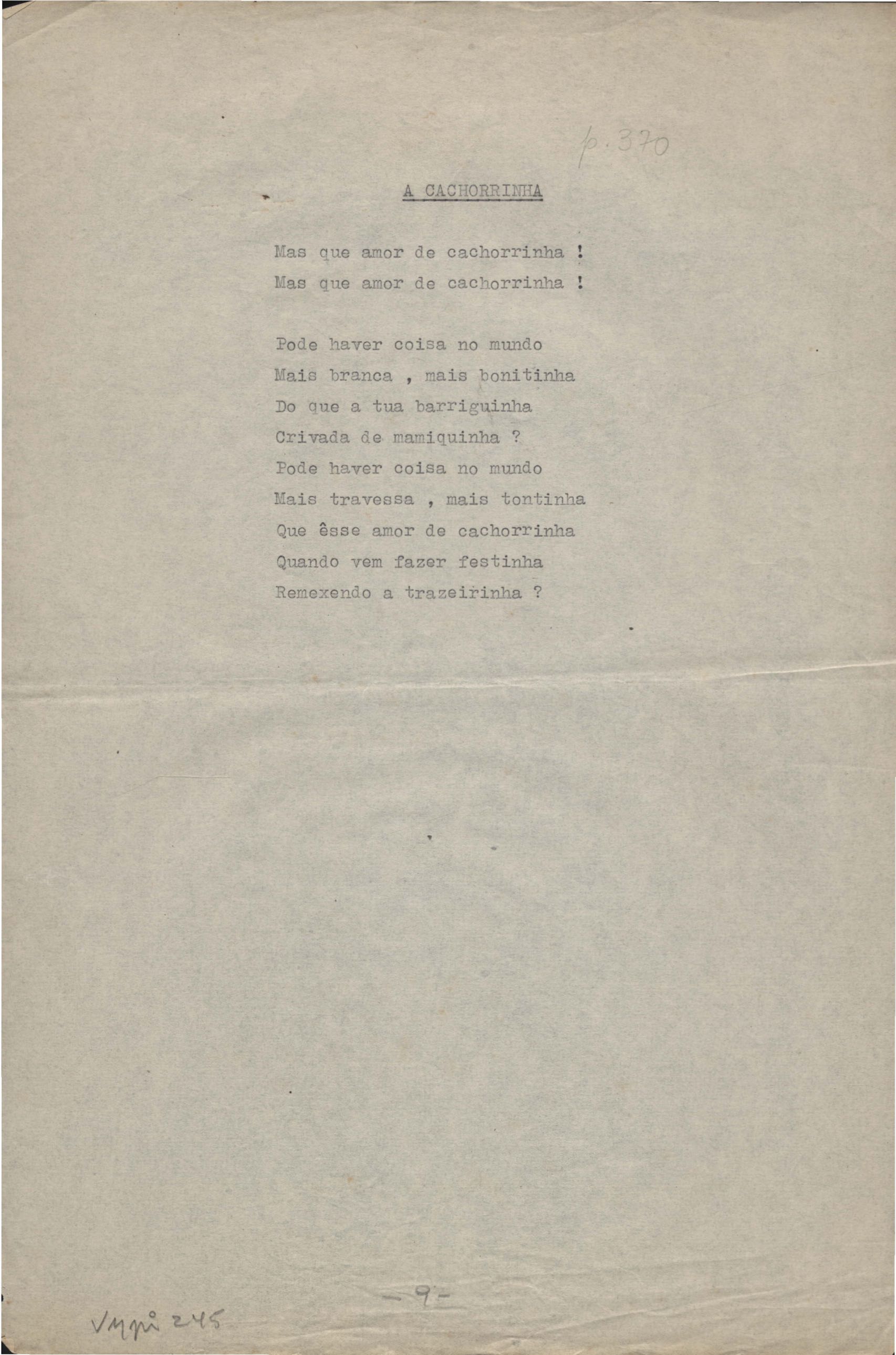 Este documento faz parte do dossiê VMPI245, que contempla poemas não datados, publicados no livro A arca de Noé. Inclui outras versões manuscritas e datilografadas.