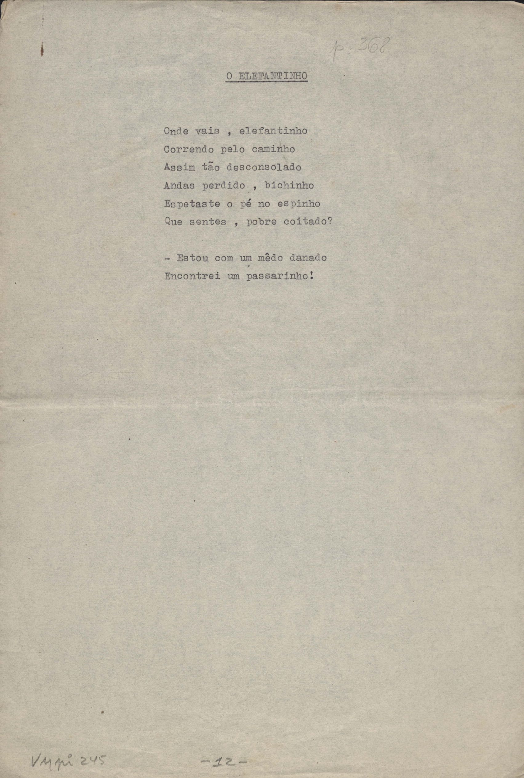Este documento faz parte do dossiê VMPI245, que contempla poemas não datados, publicados no livro A arca de Noé. Inclui outras versões manuscritas e datilografadas.