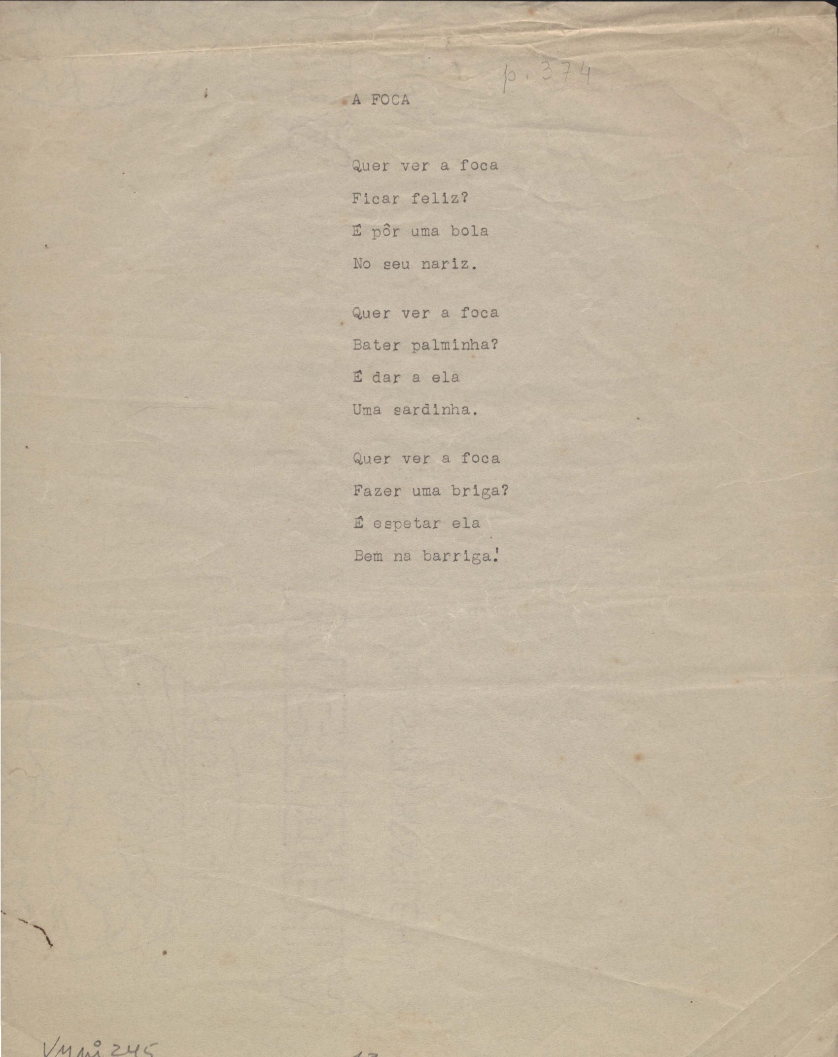 Este documento faz parte do dossiê VMPI245, que contempla poemas não datados, publicados no livro A arca de Noé. Inclui outras versões manuscritas e datilografadas.
