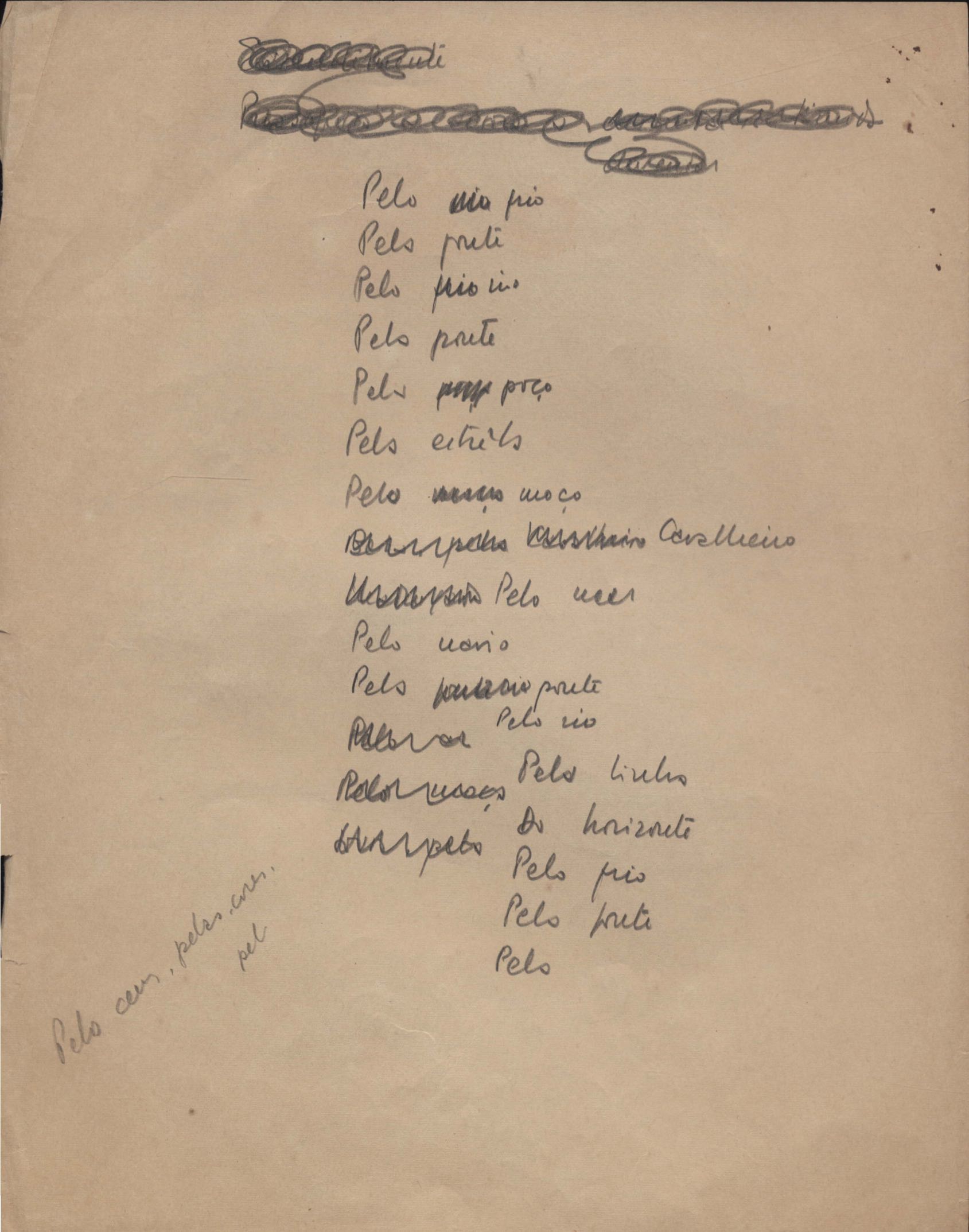 Este documento faz parte do dossiê VMPI248, "Poemas esparsos", que contempla poemas datados entre 21 ago. 1927 e 8 dez. 1971. Destes poemas, 401 são esboços e não possuem título (cf. registro VM0PI248_1_232). Estes originais não podem ser tomados como obra inédita. Ideias, tentativas, escritos inacabados, abandonados ou aproveitados posteriormente com outra forma compõem o dossiê.