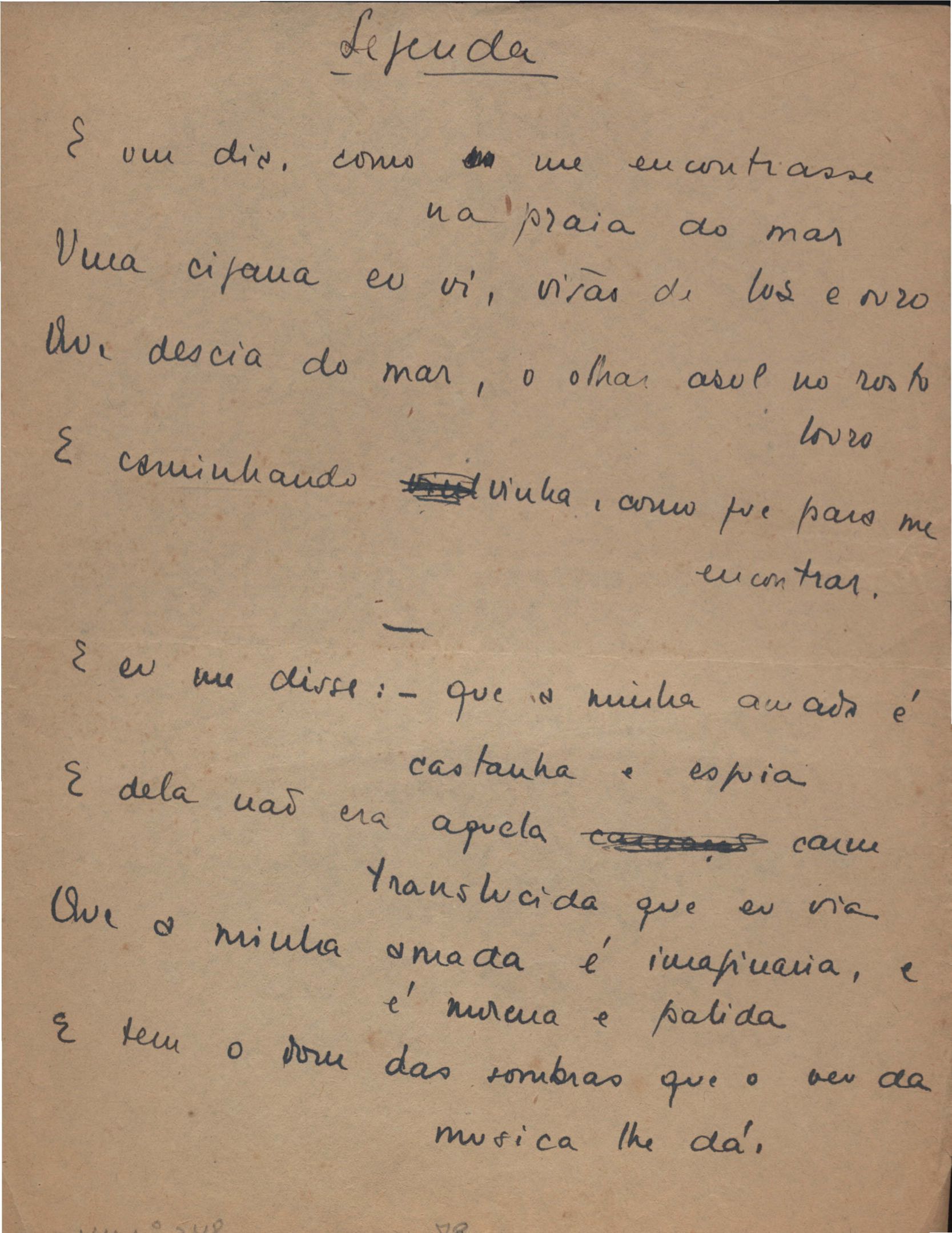 Há dois poemas com o título "Legenda". Na mesma folha que "Pressentimento" encontram-se "Legenda" e "O bilhar".