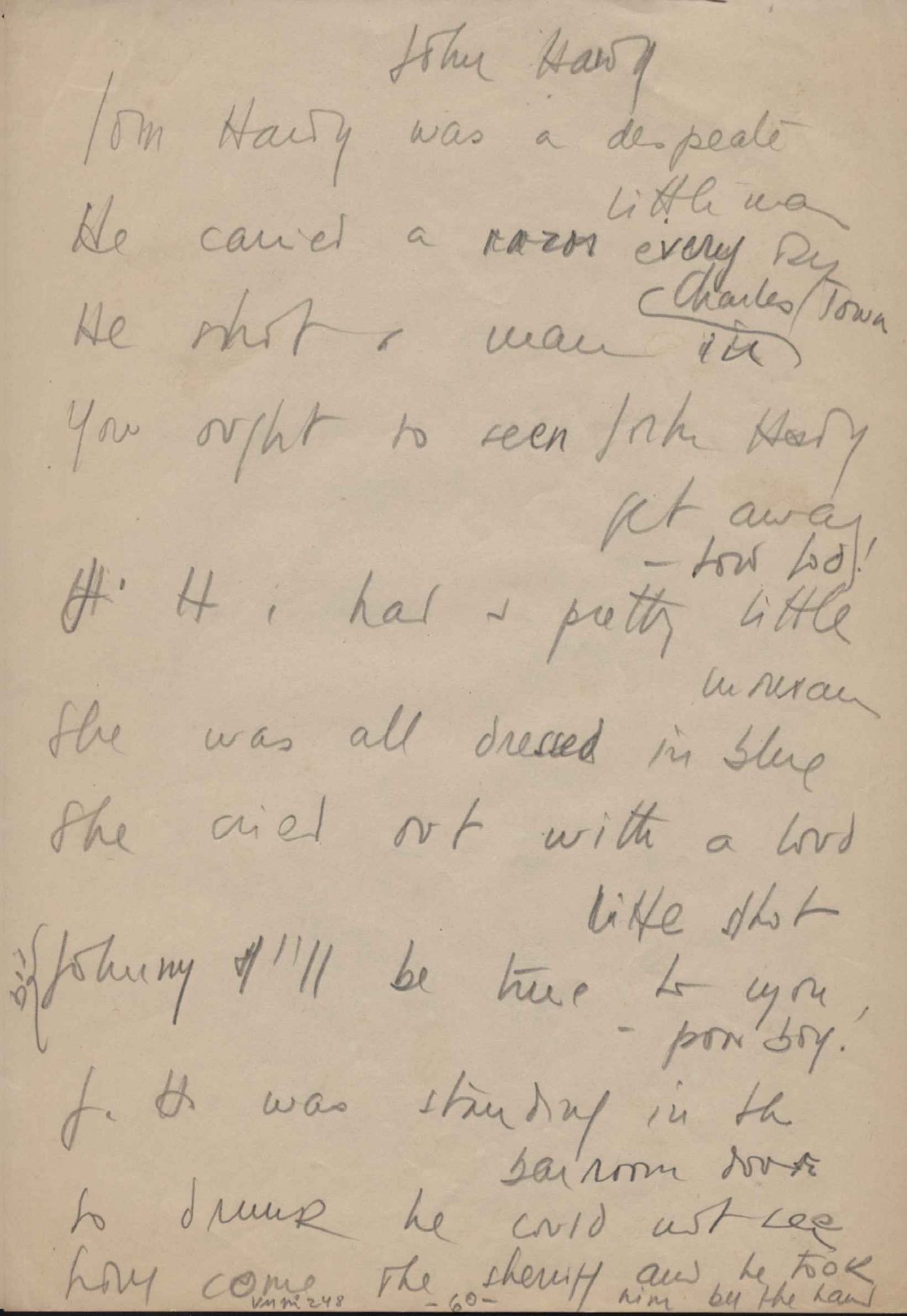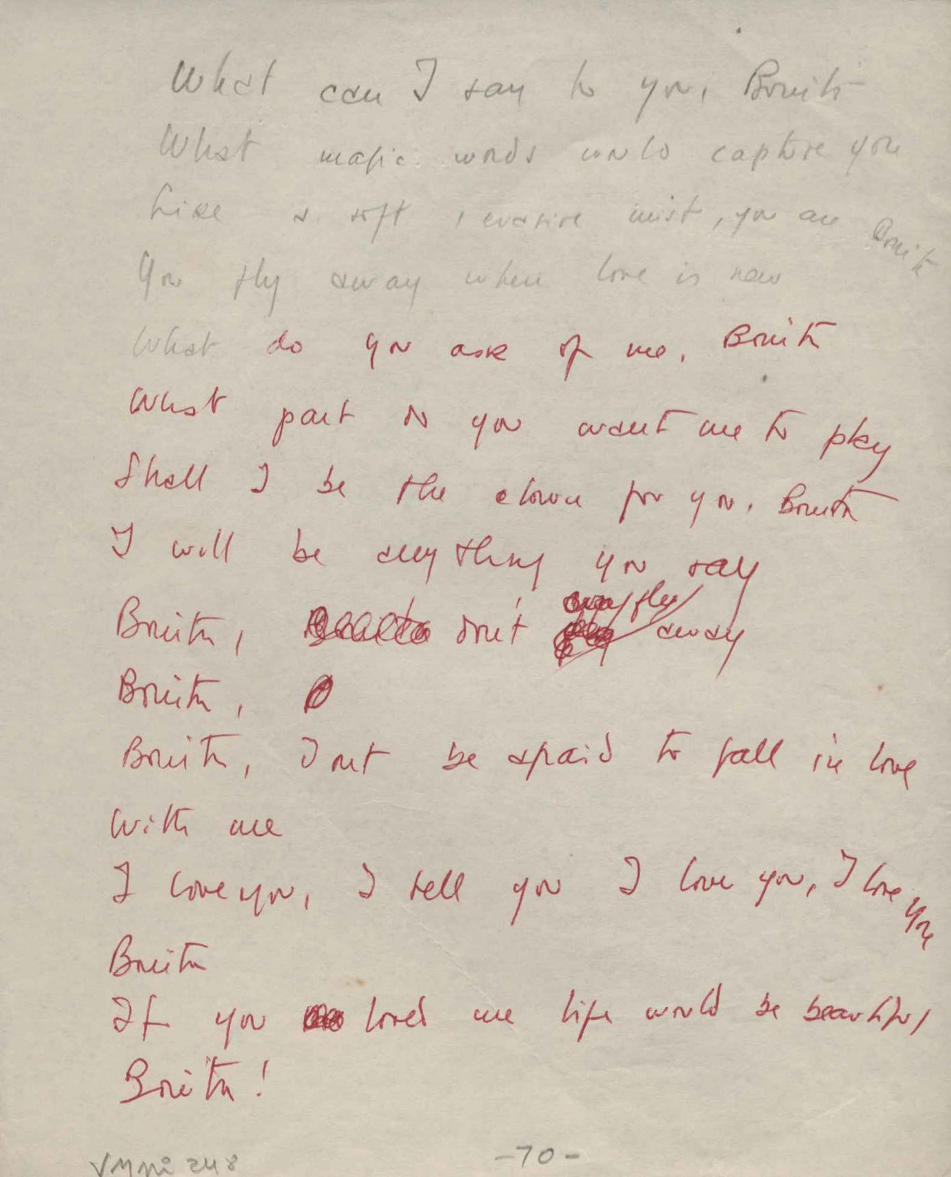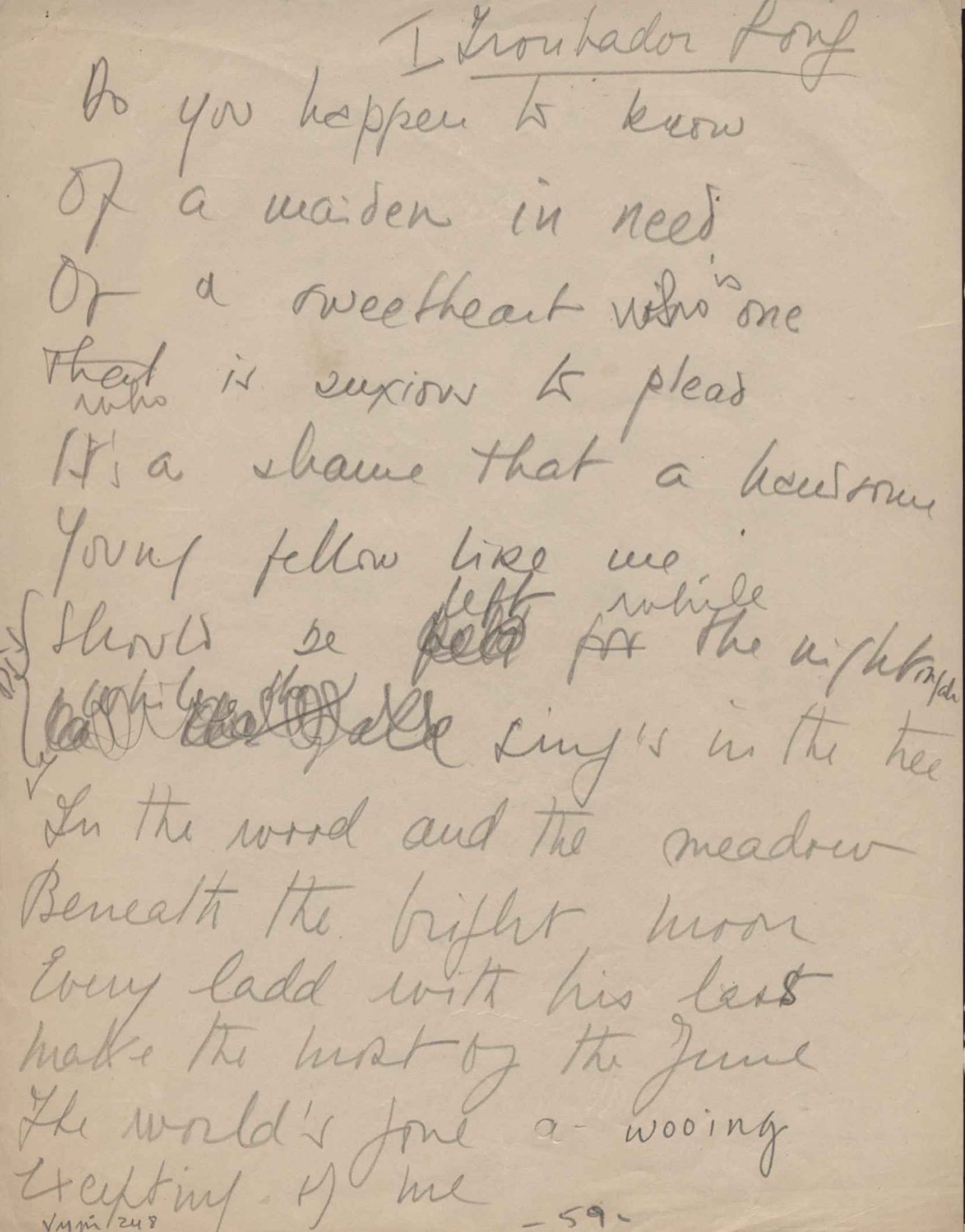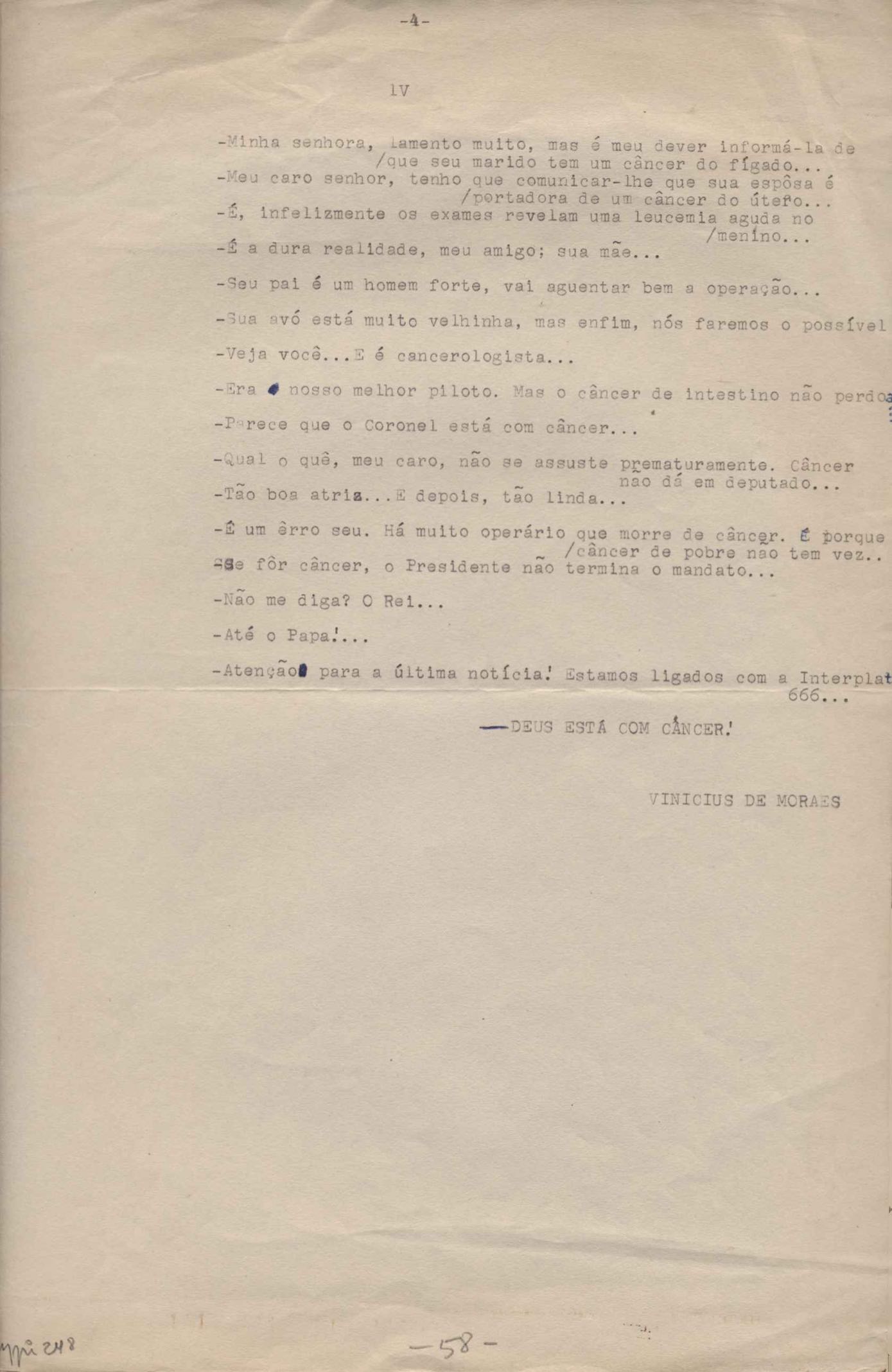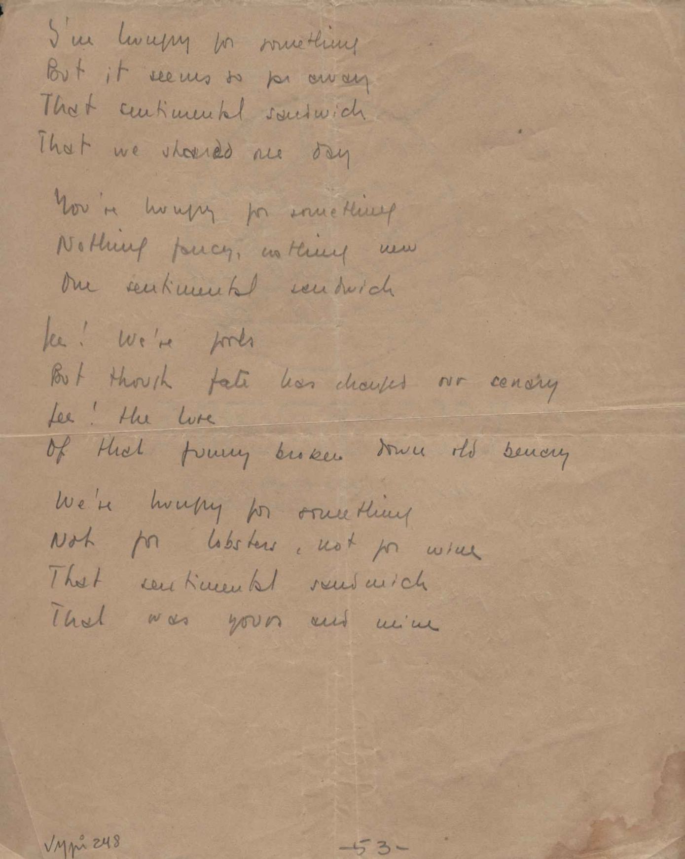 Este documento faz parte do dossiê VMPI248, "Poemas esparsos", que contempla poemas datados entre 21 ago. 1927 e 8 dez. 1971. Destes poemas, 401 são esboços e não possuem título (cf. registro VM0PI248_1_232). Estes originais não podem ser tomados como obra inédita. Ideias, tentativas, escritos inacabados, abandonados ou aproveitados posteriormente com outra forma compõem o dossiê.