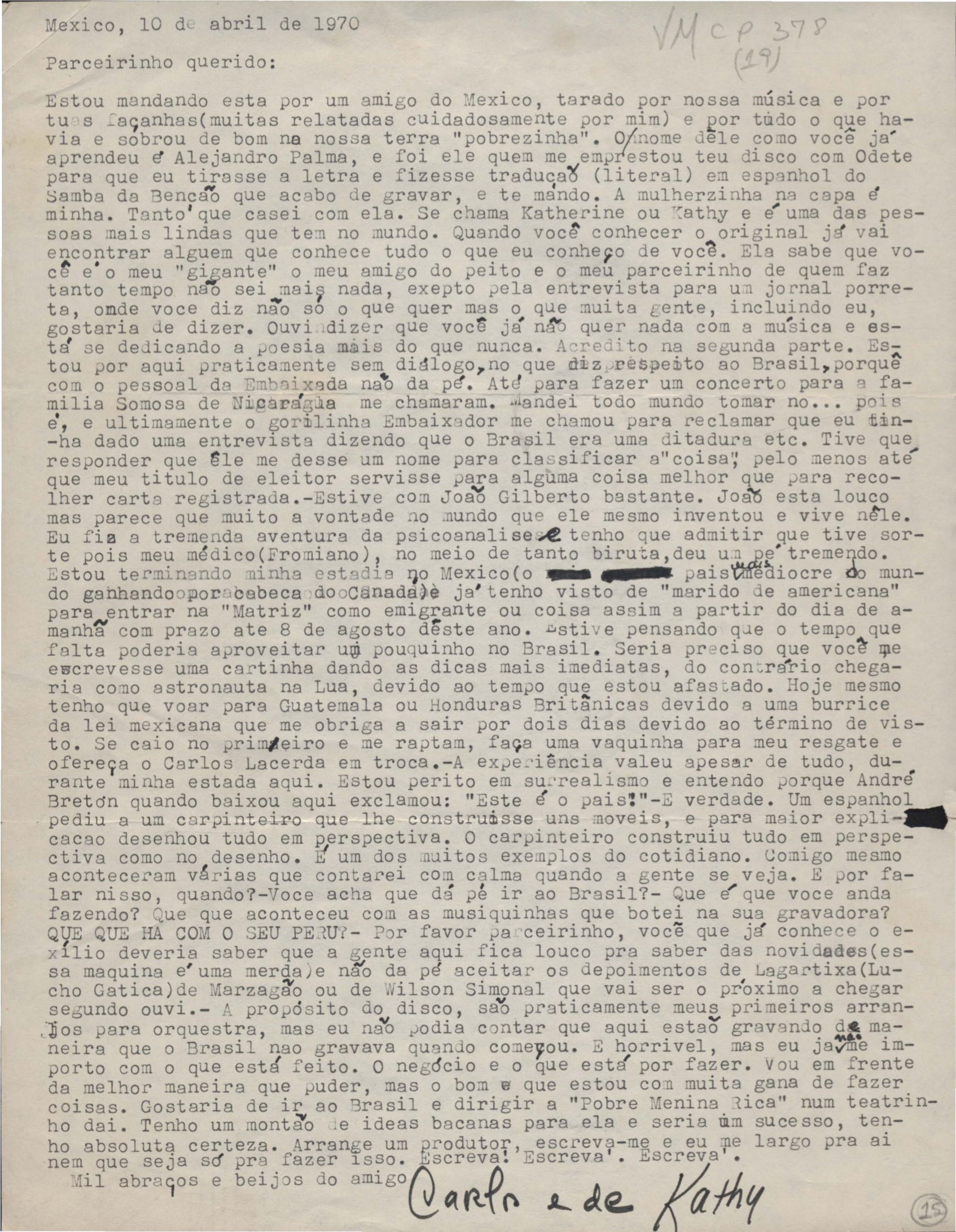 Comentários sobre a divulgação da música popular brasileira nos EUA. Informações sobre músicas que está compondo e sobre shows que está produzindo.