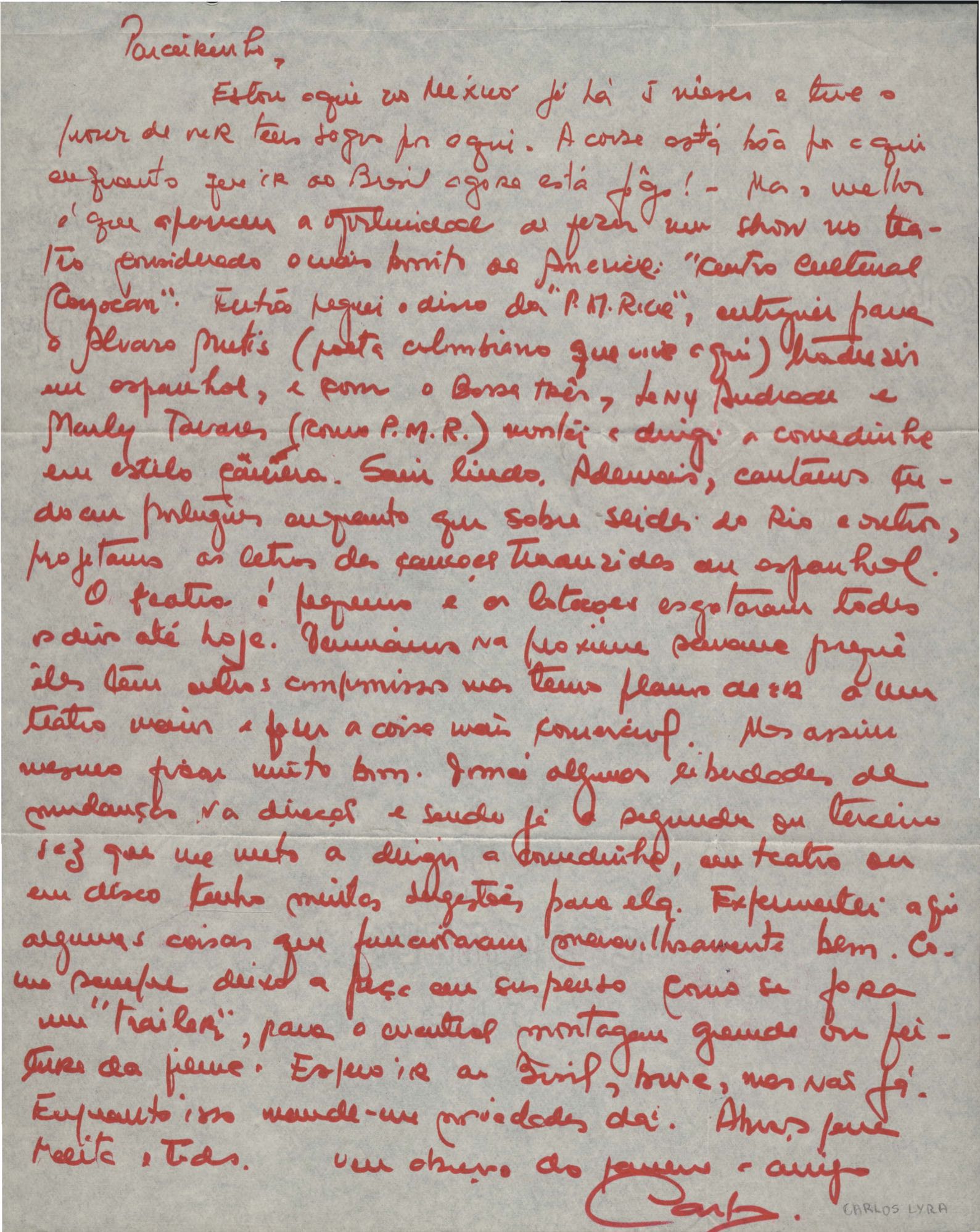 Comentários sobre a divulgação da música popular brasileira nos EUA. Informações sobre músicas que está compondo e sobre shows que está produzindo.