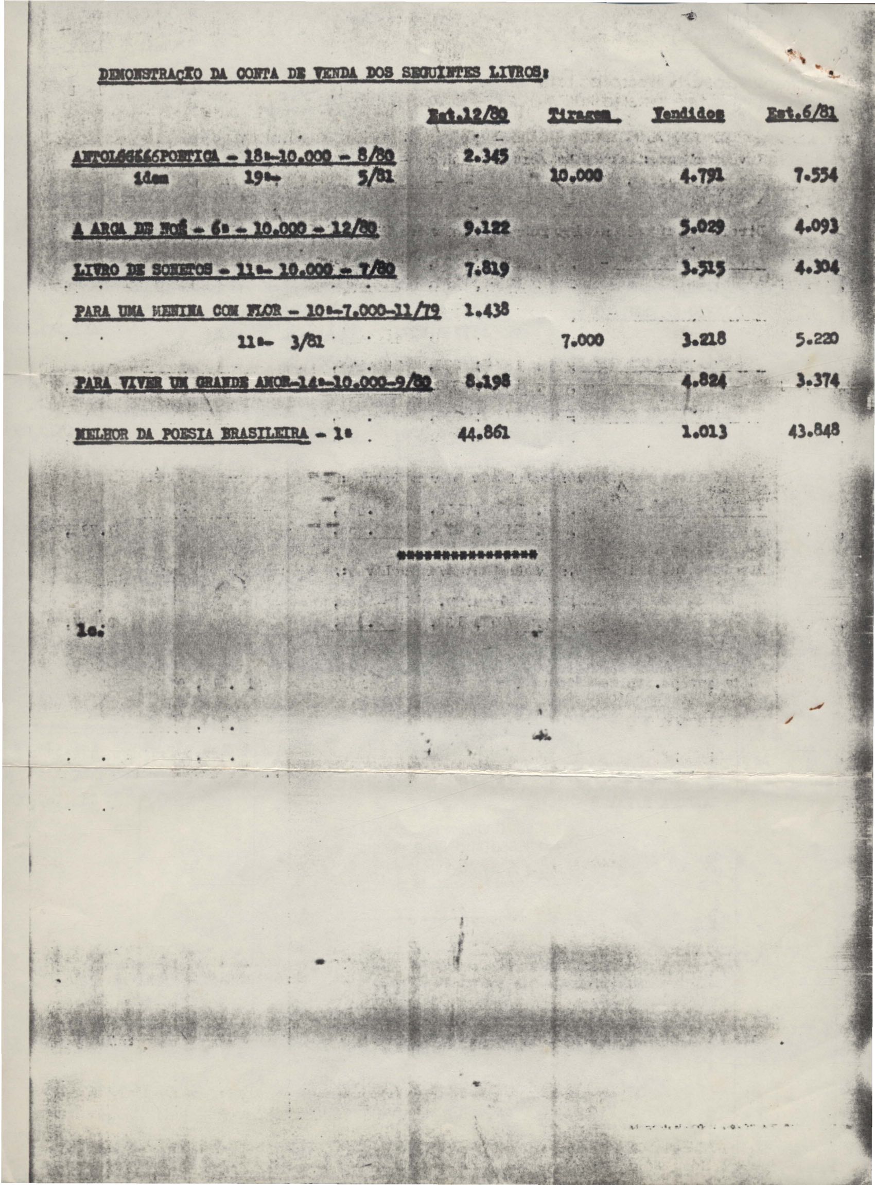 Pedido de autorização para reproduzir "O gato" na revista Bem-me-quer e trechos de A arca de Noé e Para uma menina com uma flor em coletânea para o ensino do 1º grau. Divulgação do poema "A rosa de Hiroshima". Comentários de José Olímpio sobre entrevista de VM. Informações sobre a publicação da Seleta em prosa e verso, de VM. Anexo: 1. Carta do Centro do Livro Brasileiro (Angola) à Editora Sabiá; 2. Informações sobre publicação de uma Seleta em prosa e verso, de VM; 3. Questionário para coleta de dados biobliográficos.