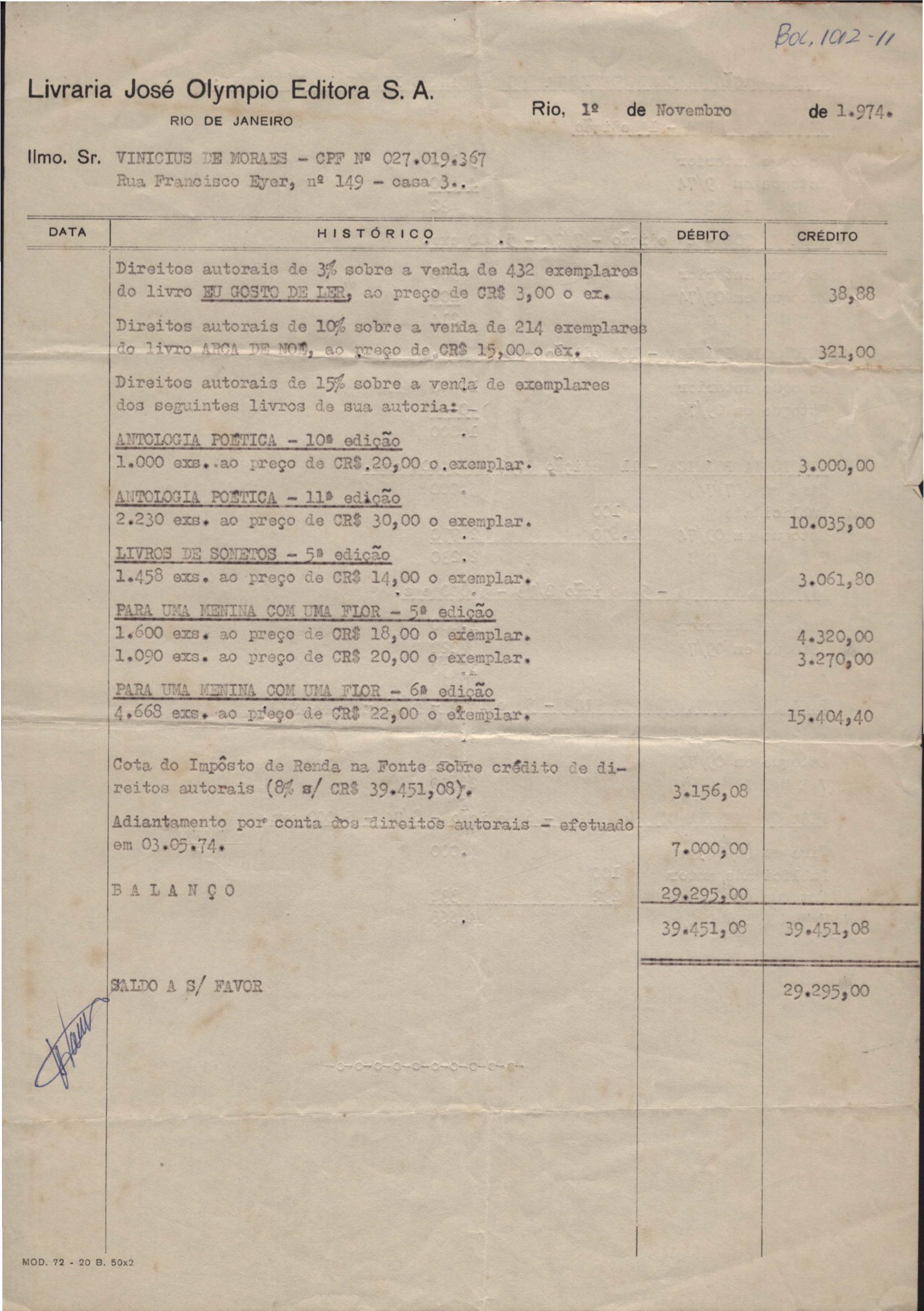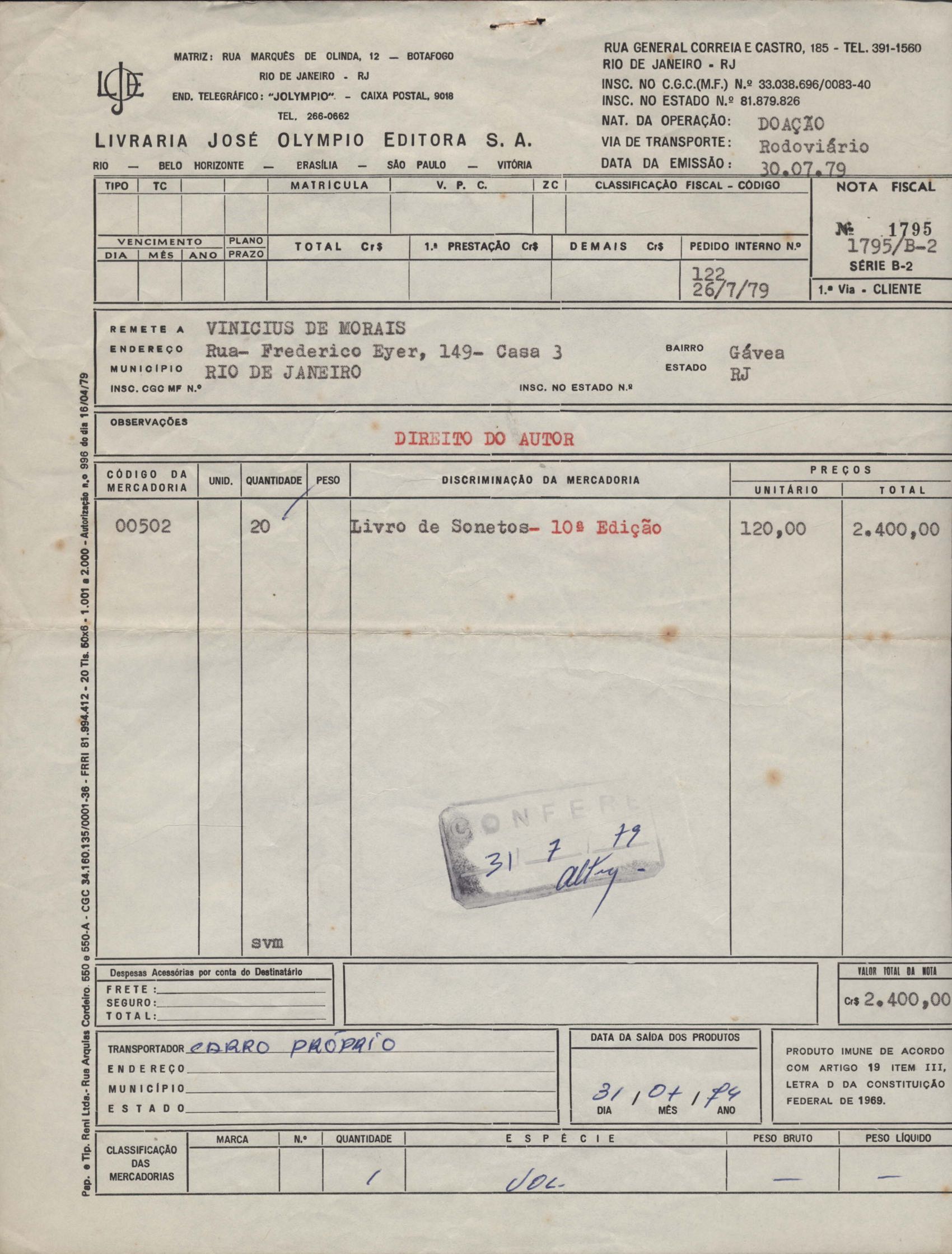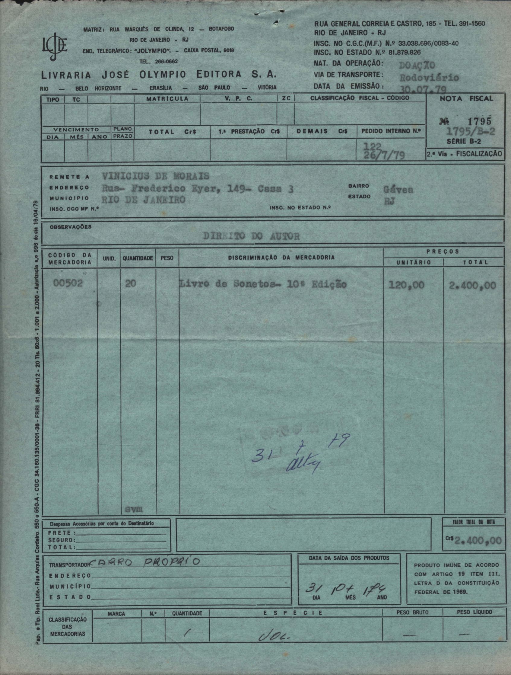Notas fiscais referente a pagamentos de direitos autorais a VM.