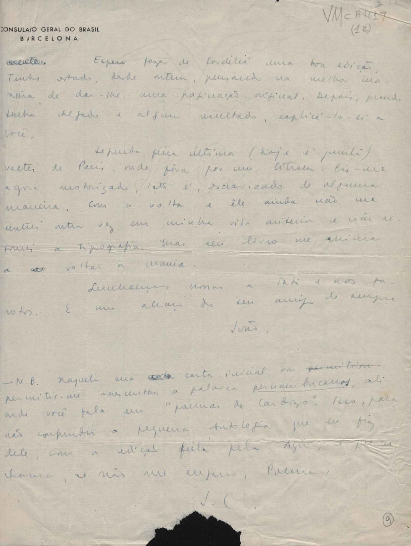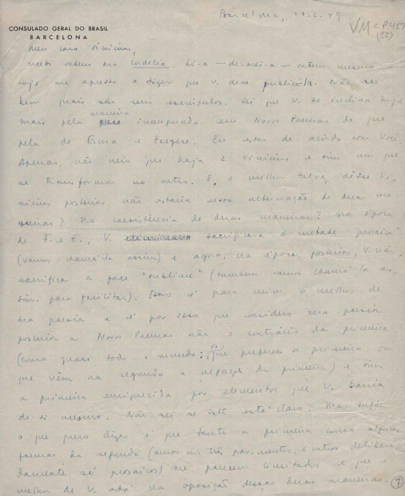 Comentários sobre seus trabalhos gráficos em Barcelona. Publicação de ensaio do signatário sobre Joan Miró. Considerações sobre a obra de VM. Publicação de Cordélia e o peregrino.