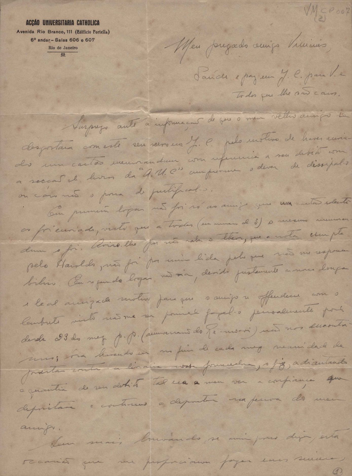 SÉRIE: CORRESPONDÊNCIA PESSOAL